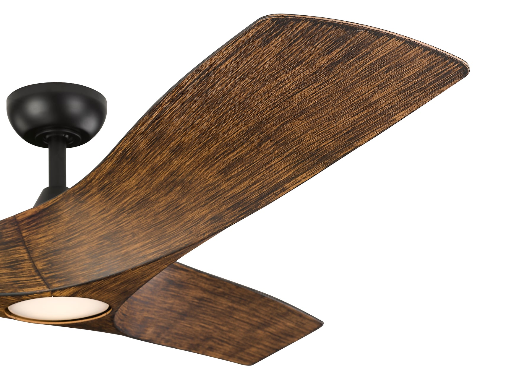 The Perenne three-blade fan with light kit offers simplicity with optimal function. The DC motor offers more stability and is much quieter than the standard AC motor. These whisper quiet motors are also more energy efficient. The Perenne includes other special advantages over the standard fan such as the replaceable light kit, 6 speed reversible motor, handheld remote with timer feature, fan blade direction, speed and light control. Moving over 8100 cubic feet of air per minute makes this fan suitable for larger spaces such as great rooms, basements, and open floor plans. Available in Matte Black, Matte Black with Wood Grain Blades or Matte White.
