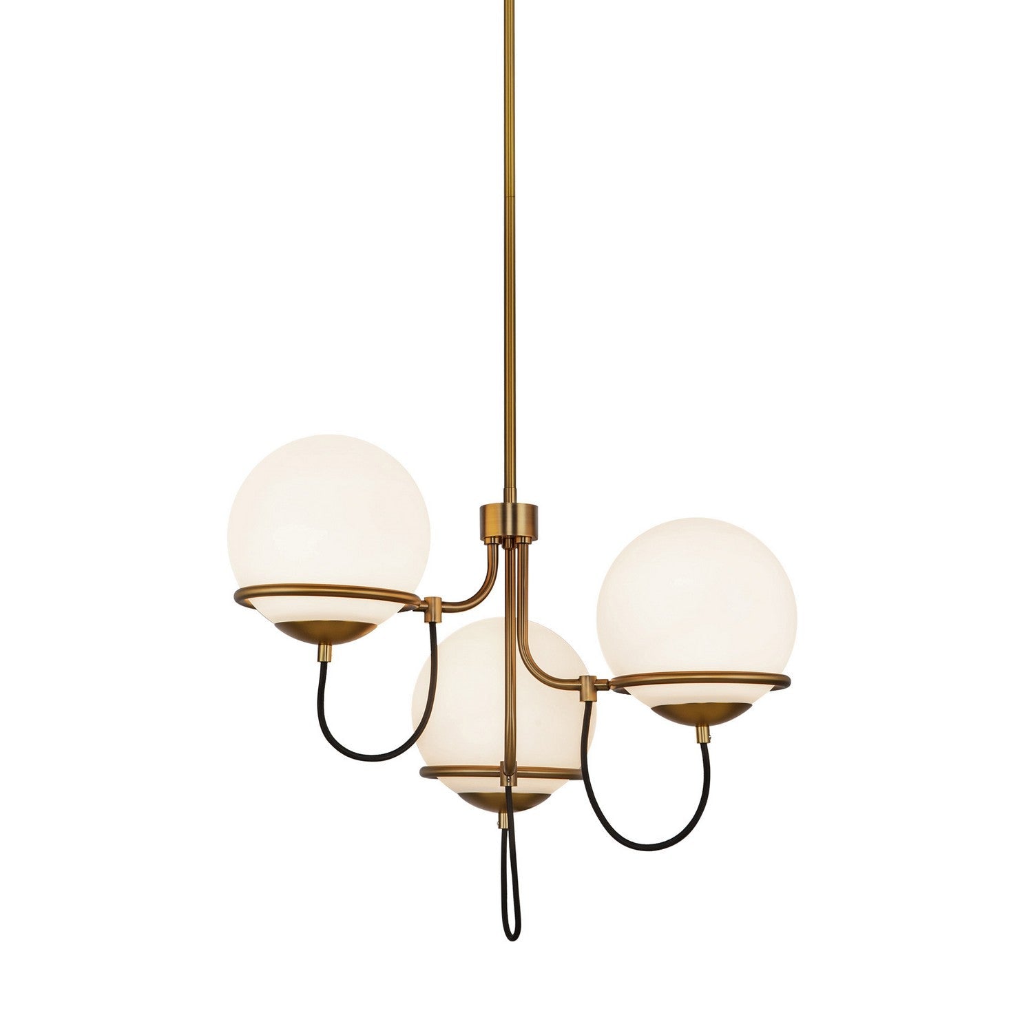 Alba is a mystical mix of Italian modern and 50's whimsy. With seemingly floating orbs of Matte Opal Glass dancing around a minimal frame, this collection seems to float effortlessly through any space. Featuring a stunning mix of Matte Black and Aged Gold details.