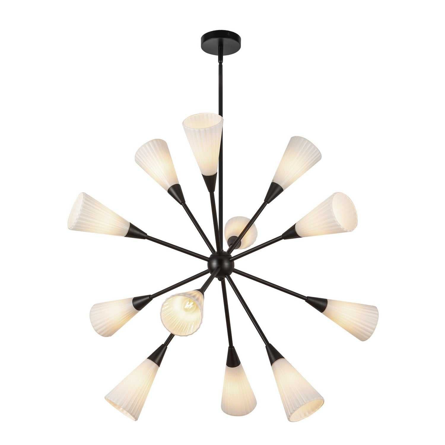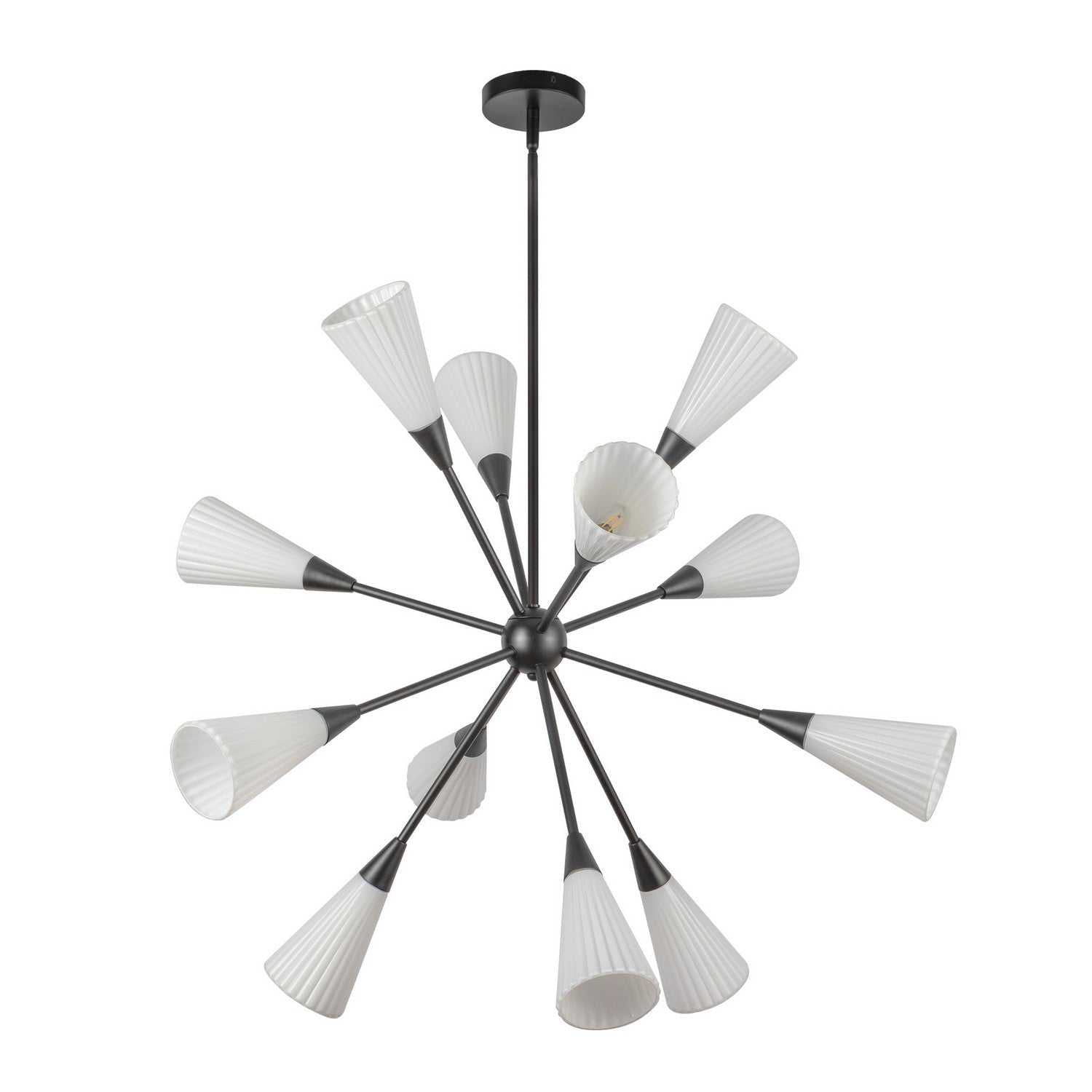 Cosmo 12 Light Chandelier in Matte Black/Glossy Ribbed Opal Glass