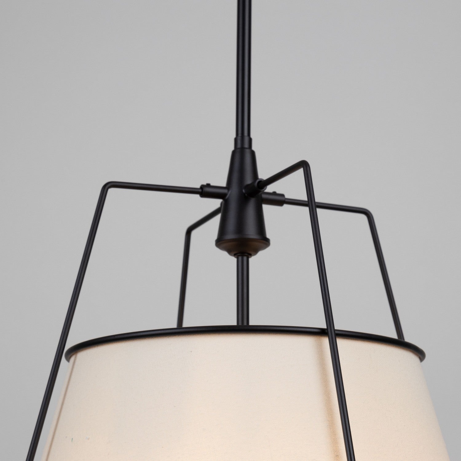Designed by Steven Sabados (S&C), the Pullman Collection of linen shades is elegantly suspended by black metal frames, seamlessly combining classic and modern design elements. The high-quality linen shades, gently tapered and expertly crafted, diffuse light to create a warm and inviting ambiance. With their timeless elegance and versatile aesthetics, these shades add a touch of sophistication to any space they grace. The model shown is a 3 lite 17" diameter pendant chandelier. (also available with brass metalwork)