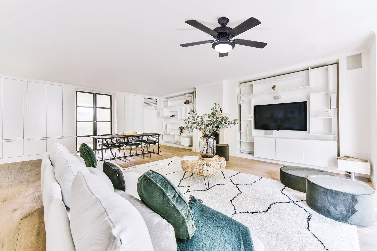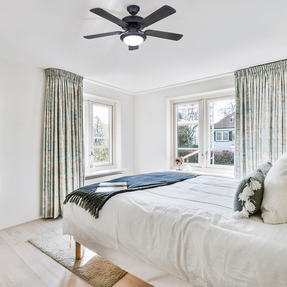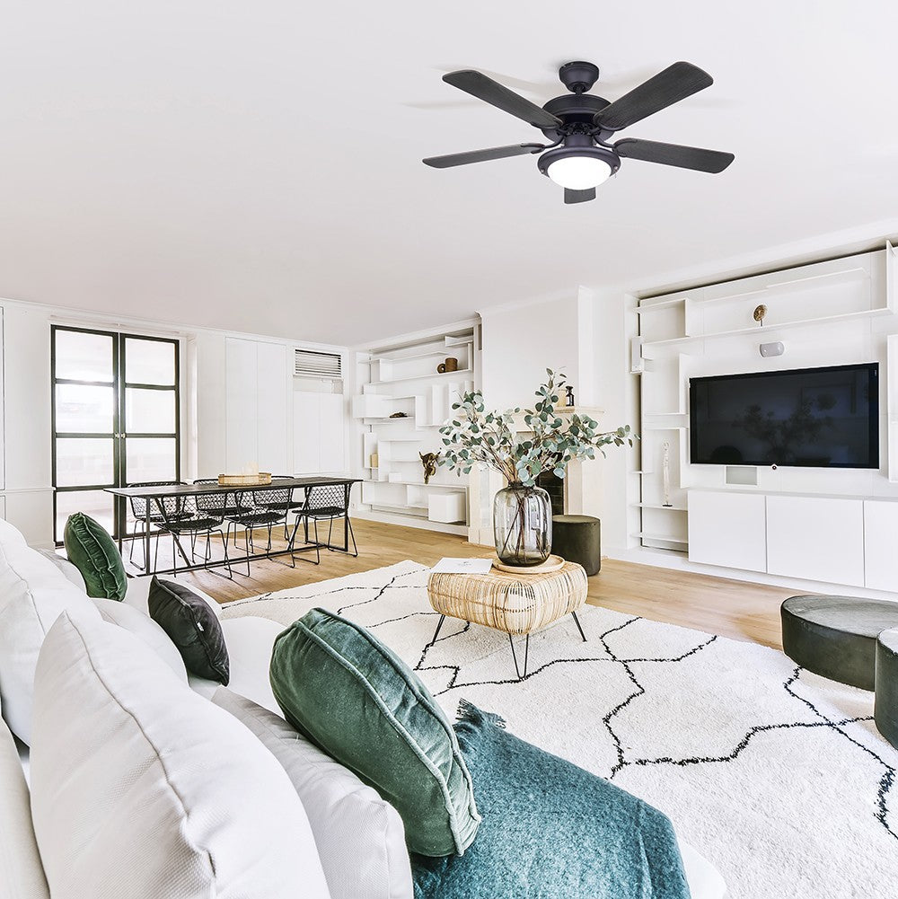 Elevate your living space with the Eclipse CF42ECL5BK Ceiling Fan, where modern functionality meets sleek design. This 42-inch fan, with its sophisticated matte black finish and five durable MDF blades, offers both style and efficient air circulation to any room. Designed for versatility, the Eclipse easily adapts to your space with its dual mount system, allowing for either a grand 17-inch downrod installation or a more discreet 13-inch flush mount setup. The centerpiece of this fan is its flat opal glass light fixture, which houses two 9.5-watt LED bulbs. These bulbs are included to provide you with immediate, energy-efficient lighting that brightens your room with a warm, inviting glow. Unlike traditional lighting, these LED bulbs offer long-lasting performance, ensuring that your spaces are illuminated without the need for frequent replacements. Operation is a breeze with the fan's pull chains, which offer a simple, reliable way to adjust the fan's speed and lighting. This feature adds a touch of classic charm to the fan, making it as practical as it is stylish. Perfect for homeowners who appreciate both aesthetics and functionality, the Eclipse CF42ECL5BK Ceiling Fan is an ideal addition to any interior design scheme. Its blend of efficient cooling, ambient lighting, and versatile mounting options make it a must-have for those looking to enhance their home's comfort and style.