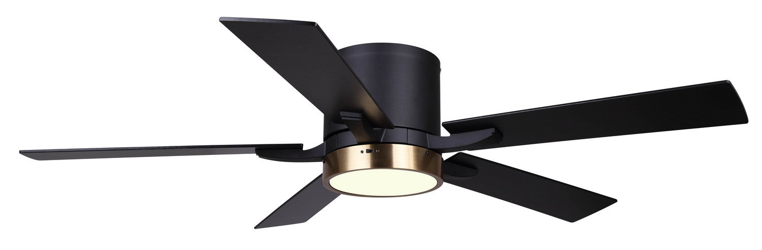 Bring timeless elegance and contemporary flair to your space with the Quinn 52-Inch Ceiling Fan, where modern luxury meets superior performance. This designer ceiling fan features a striking matte black and gold finish and five sleek plywood blades, delivering both stunning visuals and whisper-quiet air circulation. Perfect for bedrooms, living rooms, and modern interiors, Quinn blends sophisticated styling with functional excellence. Its low-profile hugger mount is ideal for rooms with low ceilings, maintaining clean lines and spatial harmony. At just 10⅜ inches in height, it effortlessly complements modern minimalist and upscale decor. The integrated 9-inch acrylic lens houses a powerful 20W dimmable LED light, delivering a bright 1000 lumens at 3000K, perfect for cozy evenings or vibrant daytime illumination. Complete with a handheld remote control, you can adjust fan speeds or dim the light with ease—tailoring comfort and ambiance to your mood. Energy Star certified and engineered for lasting quality with a 15,000-hour LED lifespan, the Quinn ceiling fan is more than a functional piece—it's a modern design statement built to elevate your home.