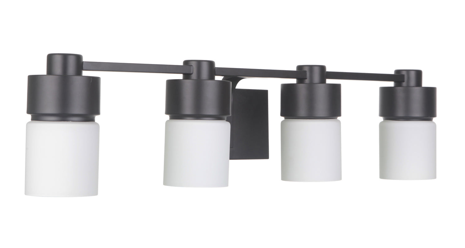 Clean lines, white opal glass with a subtle nod to industrial make the District an ideal choice equally at home in a transitional or traditional setting. The District vanity collection is available in four sizes from a single light to four light vanity