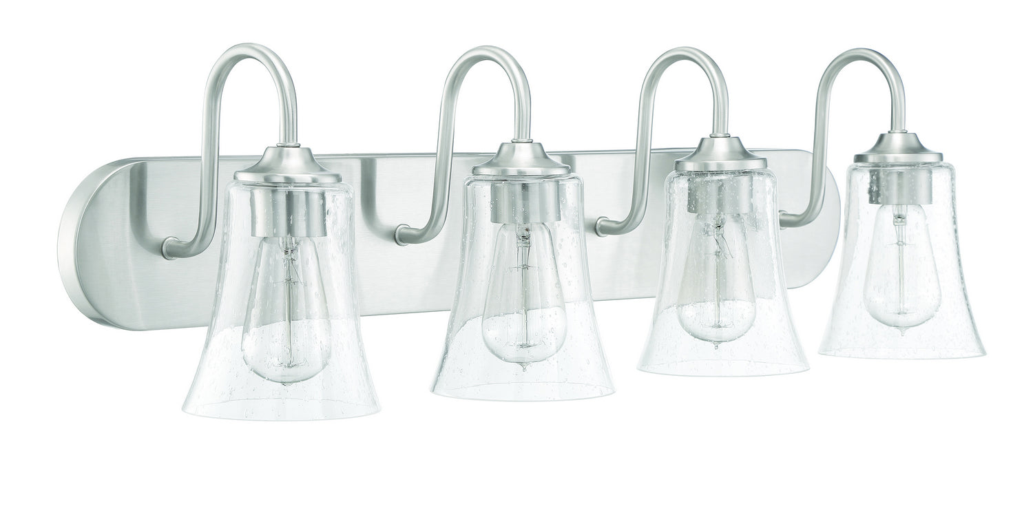 From the delicate contours and smooth flowing lines, to the graceful beauty of the clear seeded or white frosted glass shades, the Gwyneth collection redefines value and style.