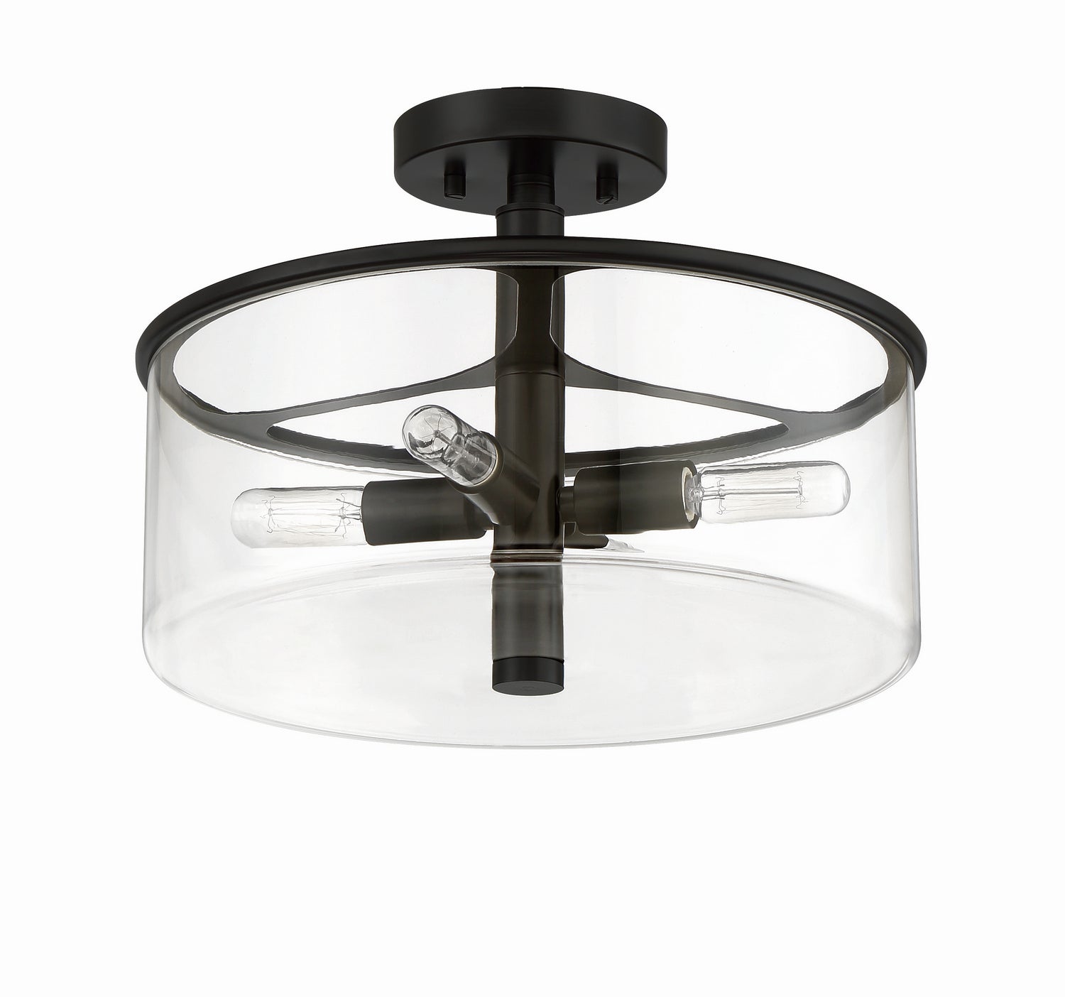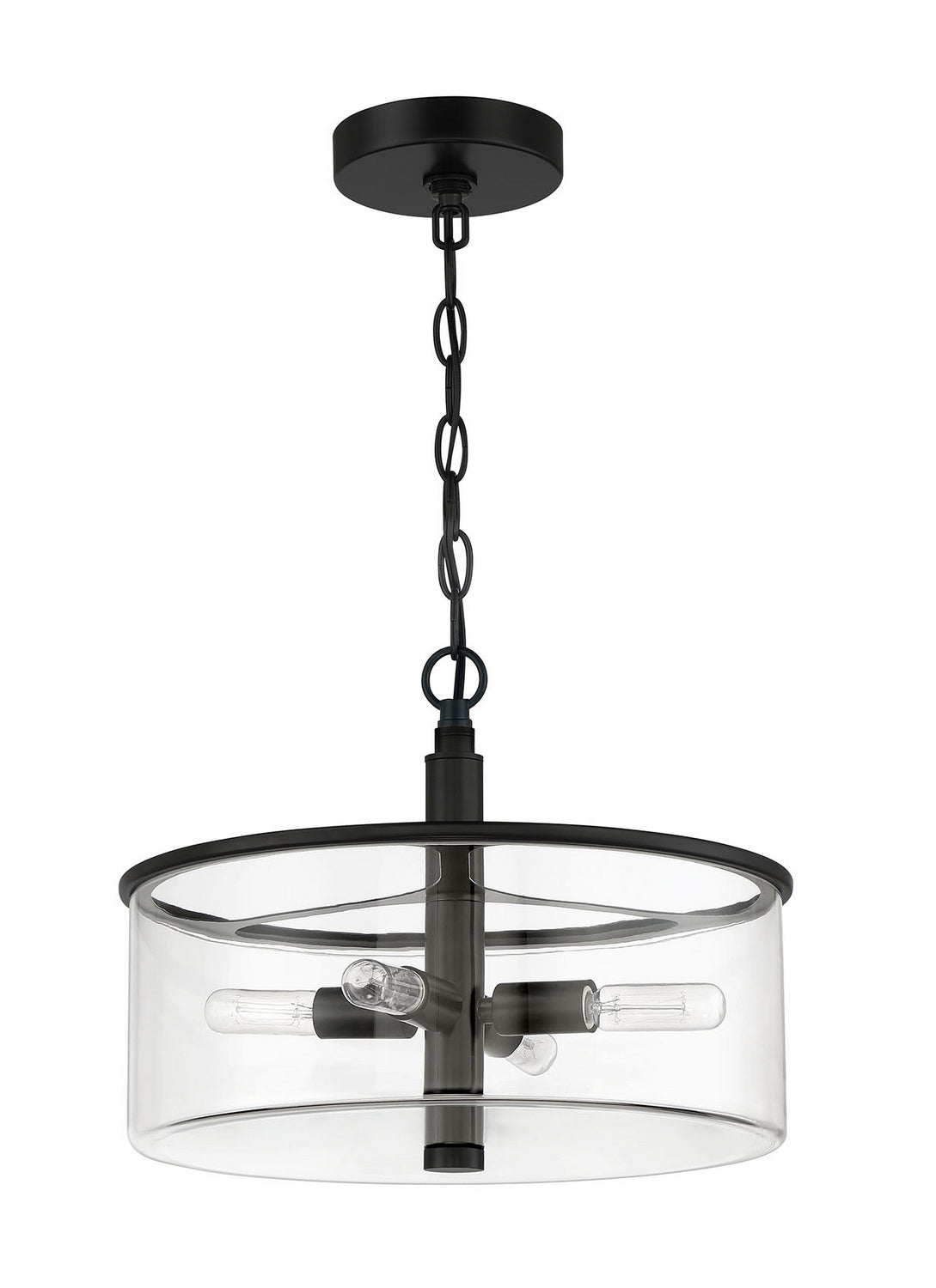 The elevated clear glass cylinder globes and slender arms enhance the simplistic beauty of the Hailie interior lighting collection by Craftmade. The Hailie collection includes a full array of chandeliers, semi and flushmounts, pendant and several sizes of vanity bath bars.