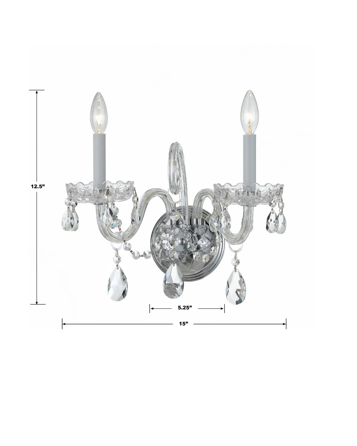 Traditional Crystal Two Light Wall Sconce in Polished Chrome