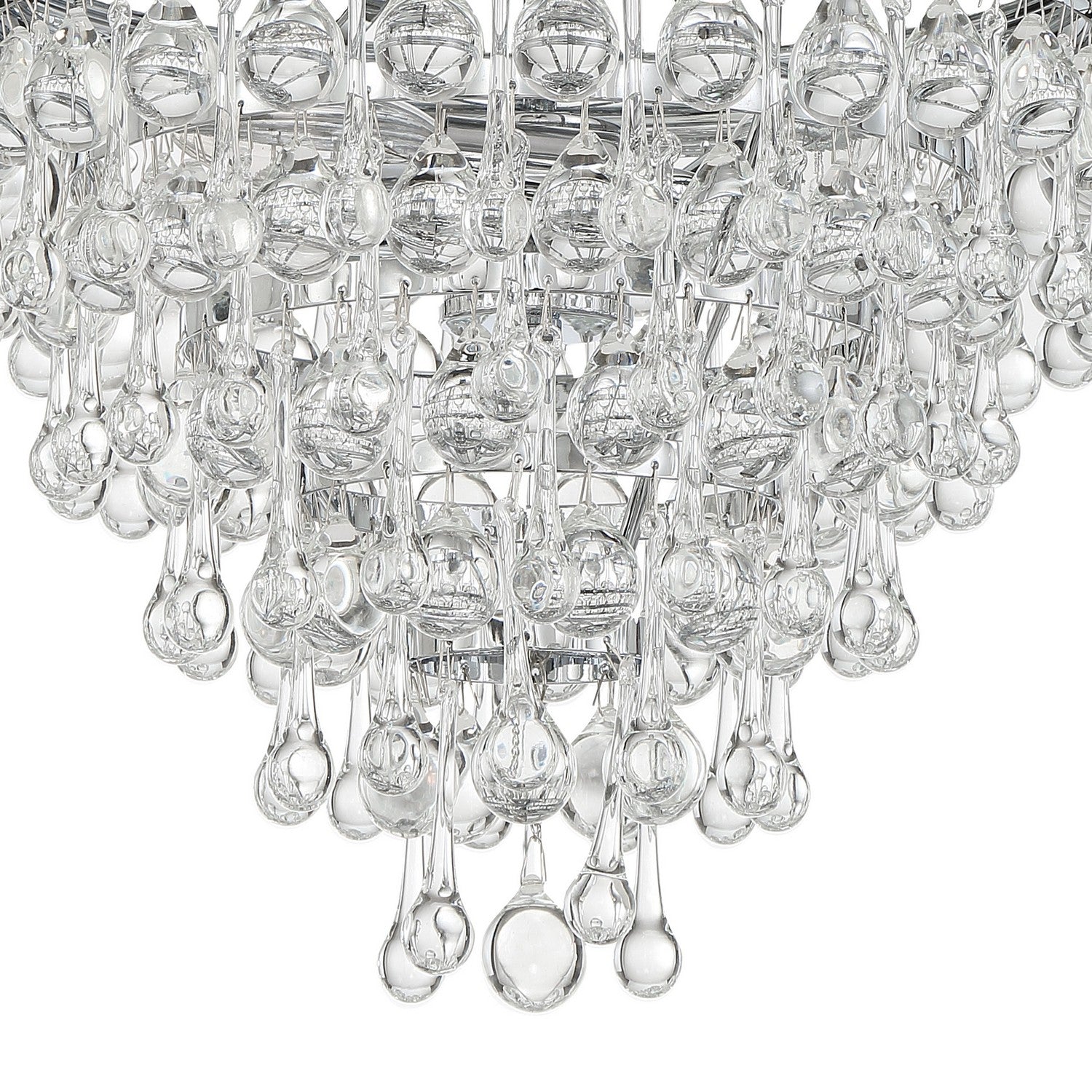 Elegance and glamour will illuminate the room with the Calypso collection. Draped in an abundance of smoothed shaped clear drops and balls, this contemporary collection is a perfect statement to a living room, dining room, bathroom, or entry.