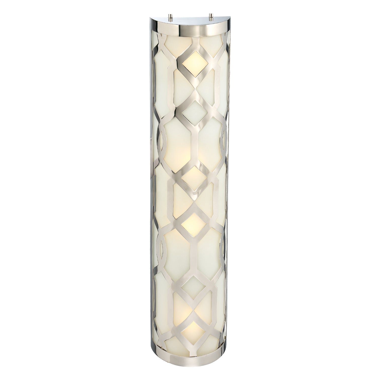 A striking geometric statement, the Jennings collection pairs Libby Langdon's signature classic design with a modern flair. The Jennings is an open, graphic metal design with a white glass shade. A perfect marriage of classic and modern creating the ideal elegance.