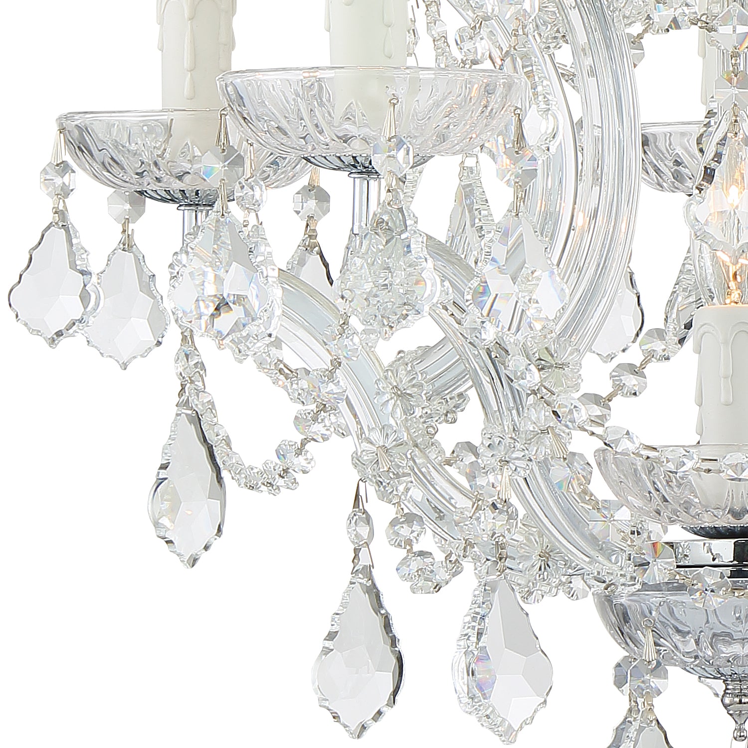 Draped in an abundance of crystal, the Maria Theresa collection is the epitome of high style. The fixture is stunning with glass arm frame decked with strands of crystals. The fixture showcases opulence and decadence and is the perfect traditional accent to any space. Whether in a living room, or even closet or hallway, this fixture bring a luxurious addition to any decor.