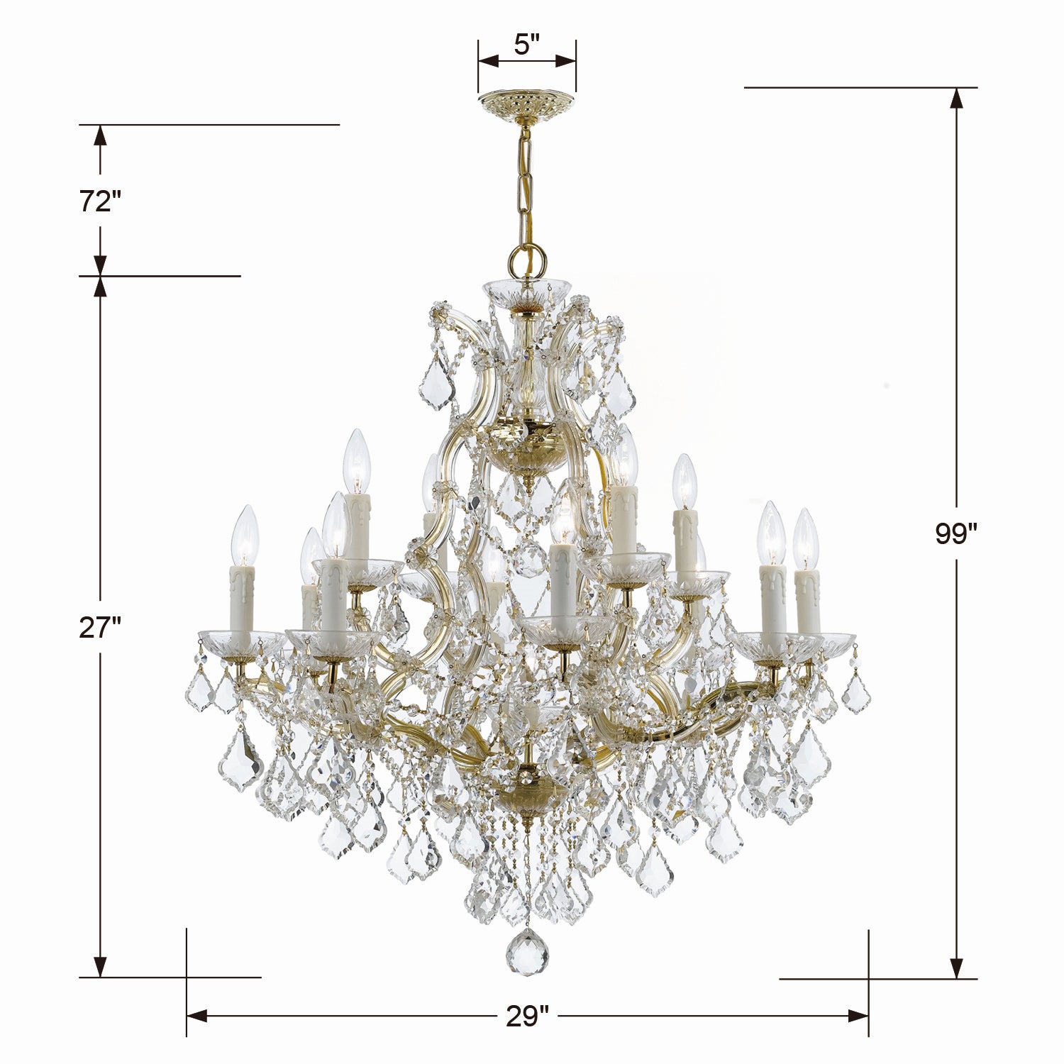 Draped in an abundance of crystal, the Maria Theresa collection is the epitome of high style. The fixture is stunning with glass arm frame decked with strands of crystals. The fixture showcases opulence and decadence and is the perfect traditional accent to any space. Whether in a living room, or even closet or hallway, this fixture bring a luxurious addition to any decor.