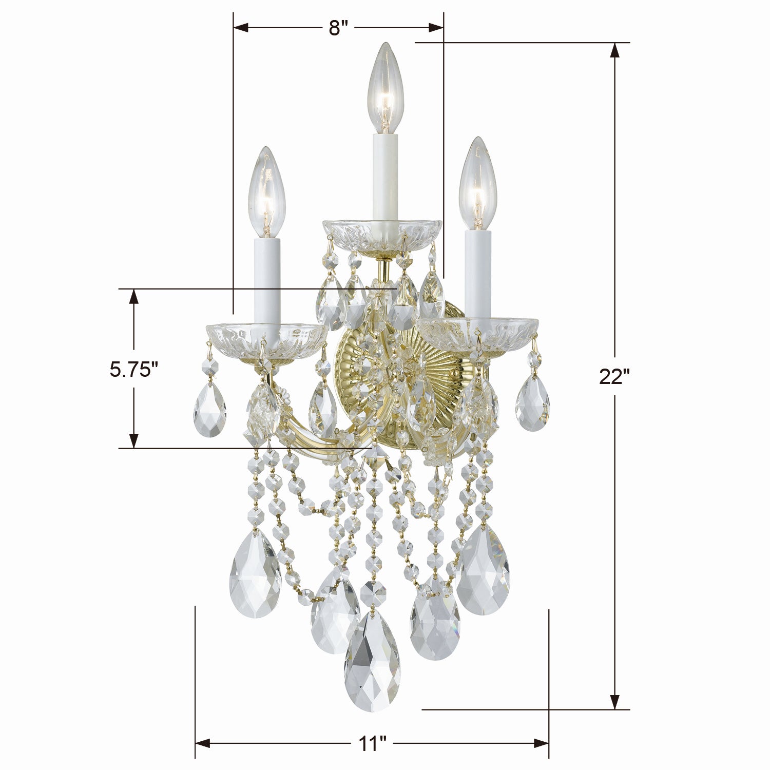 Draped in an abundance of crystal, the Maria Theresa collection is the epitome of high style. The fixture is stunning with glass arm frame decked with strands of crystals. The fixture showcases opulence and decadence and is the perfect traditional accent to any space. Whether in a living room, or even closet or hallway, this fixture bring a luxurious addition to any decor.