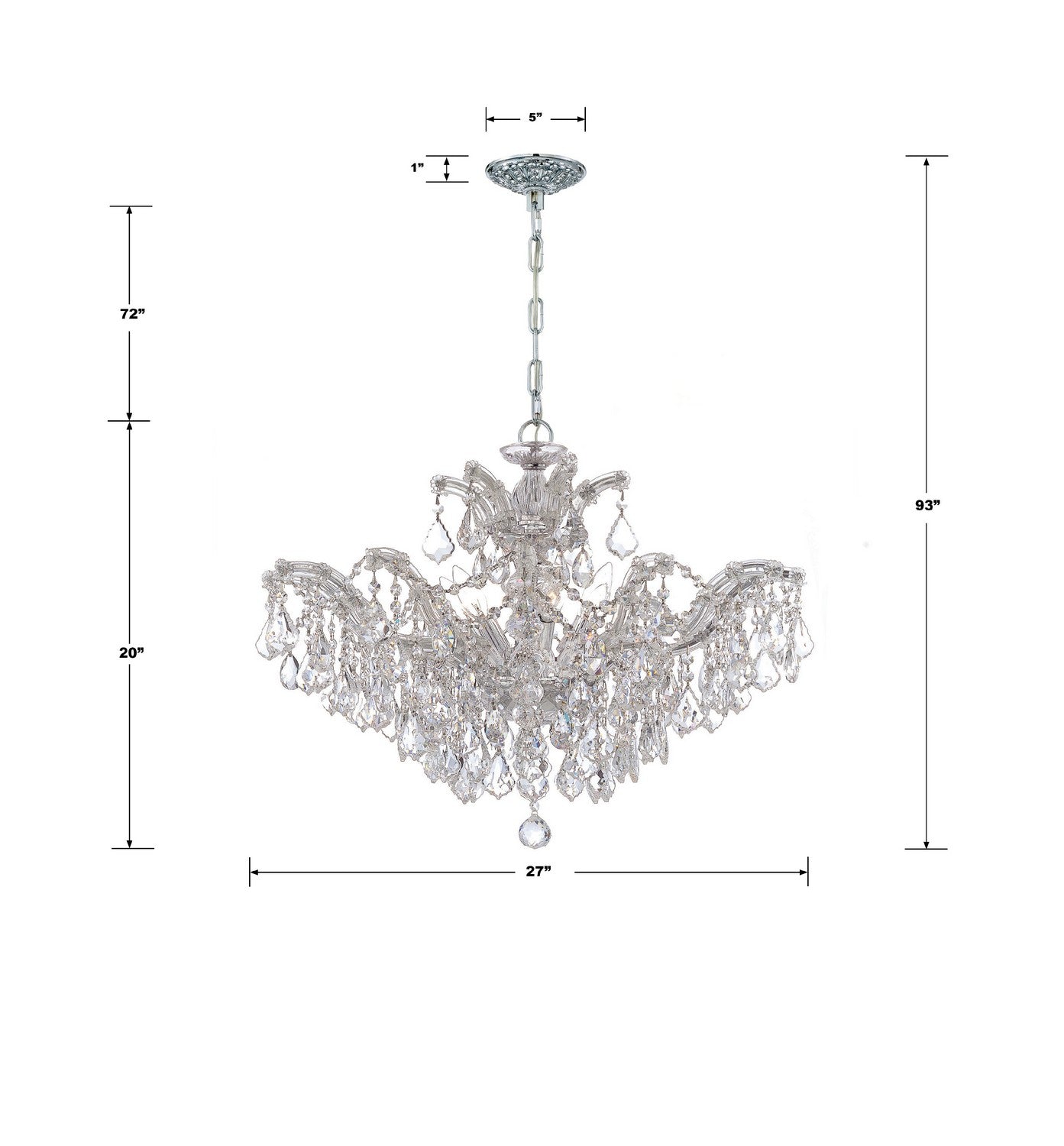 Draped in an abundance of crystal, the Maria Theresa collection is the epitome of high style. The fixture is stunning with glass arm frame decked with strands of crystals. The fixture showcases opulence and decadence and is the perfect traditional accent to any space. Whether in a living room, or even closet or hallway, this fixture bring a luxurious addition to any decor.