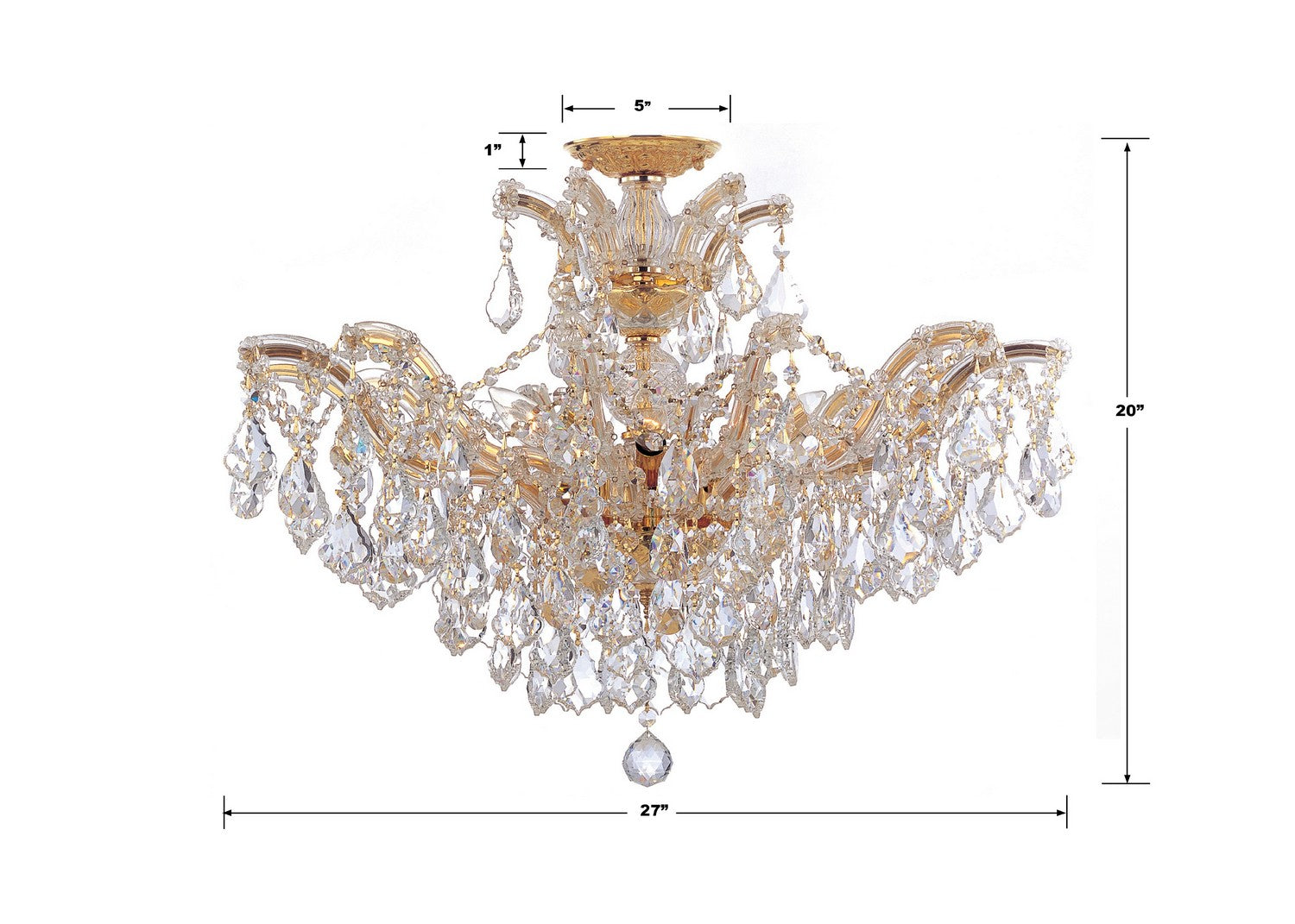 Draped in an abundance of crystal, the Maria Theresa collection is the epitome of high style. The fixture is stunning with glass arm frame decked with strands of crystals. The fixture showcases opulence and decadence and is the perfect traditional accent to any space. Whether in a living room, or even closet or hallway, this fixture bring a luxurious addition to any decor.