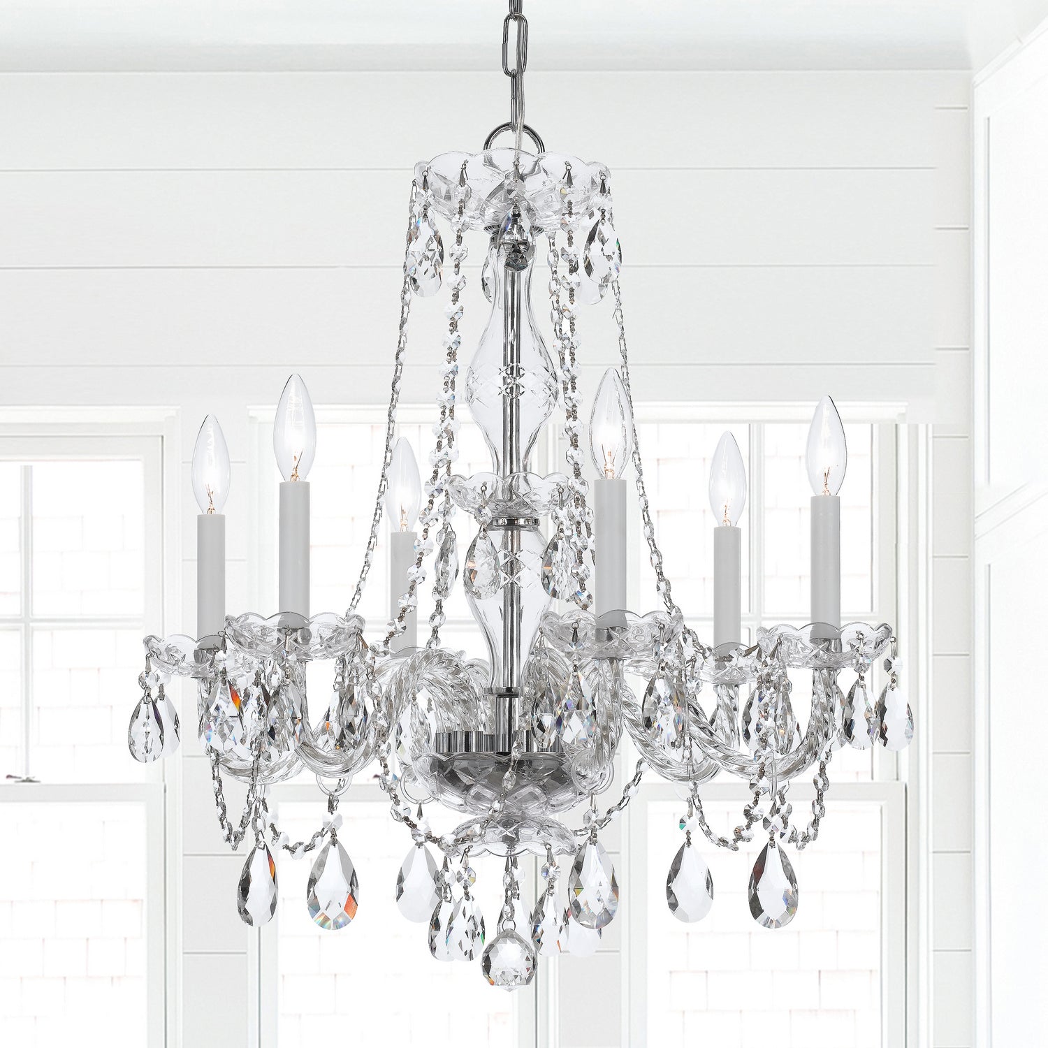 Traditional Crystal Six Light Chandelier in Polished Chrome - available from The Lighting Shoppe, trusted by Canadian homeowners