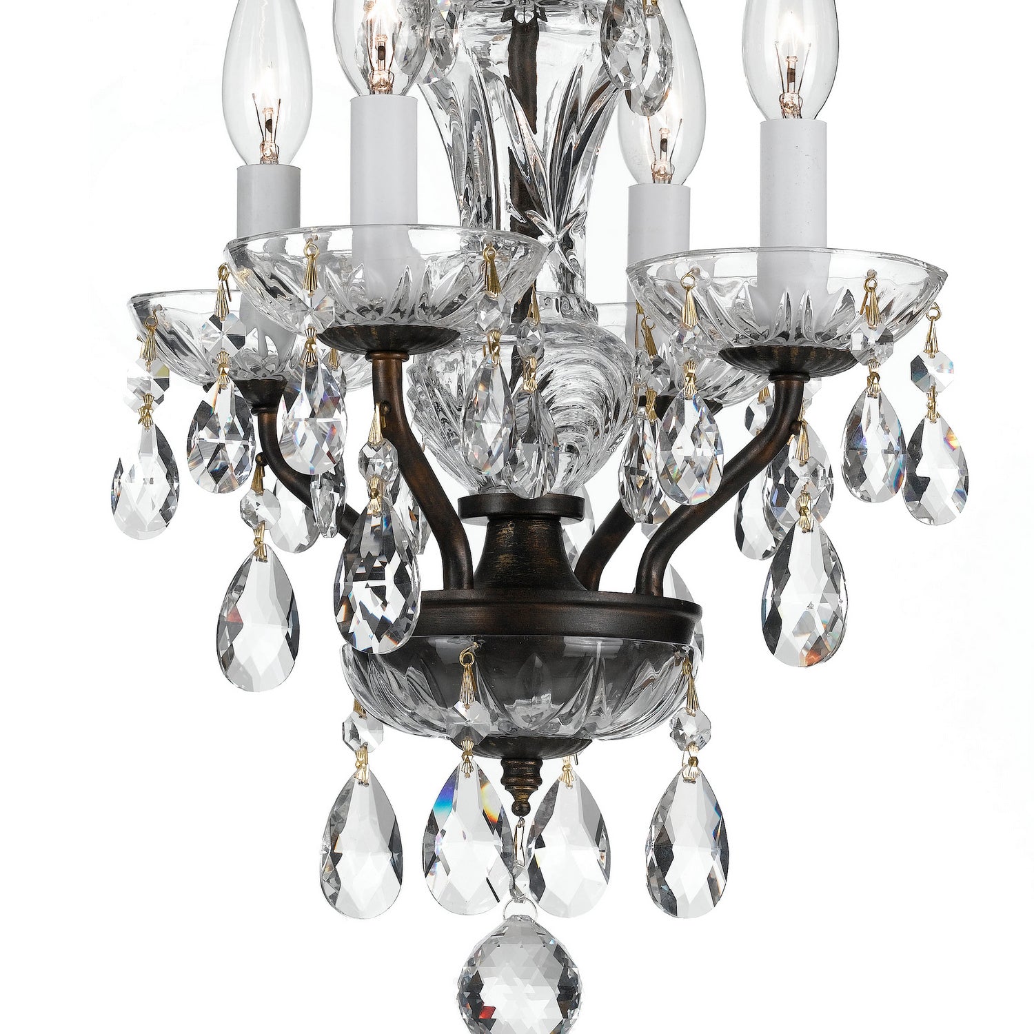 Traditional Crystal Four Light Mini Chandelier in English Bronze - available from The Lighting Shoppe, trusted by Canadian homeowners