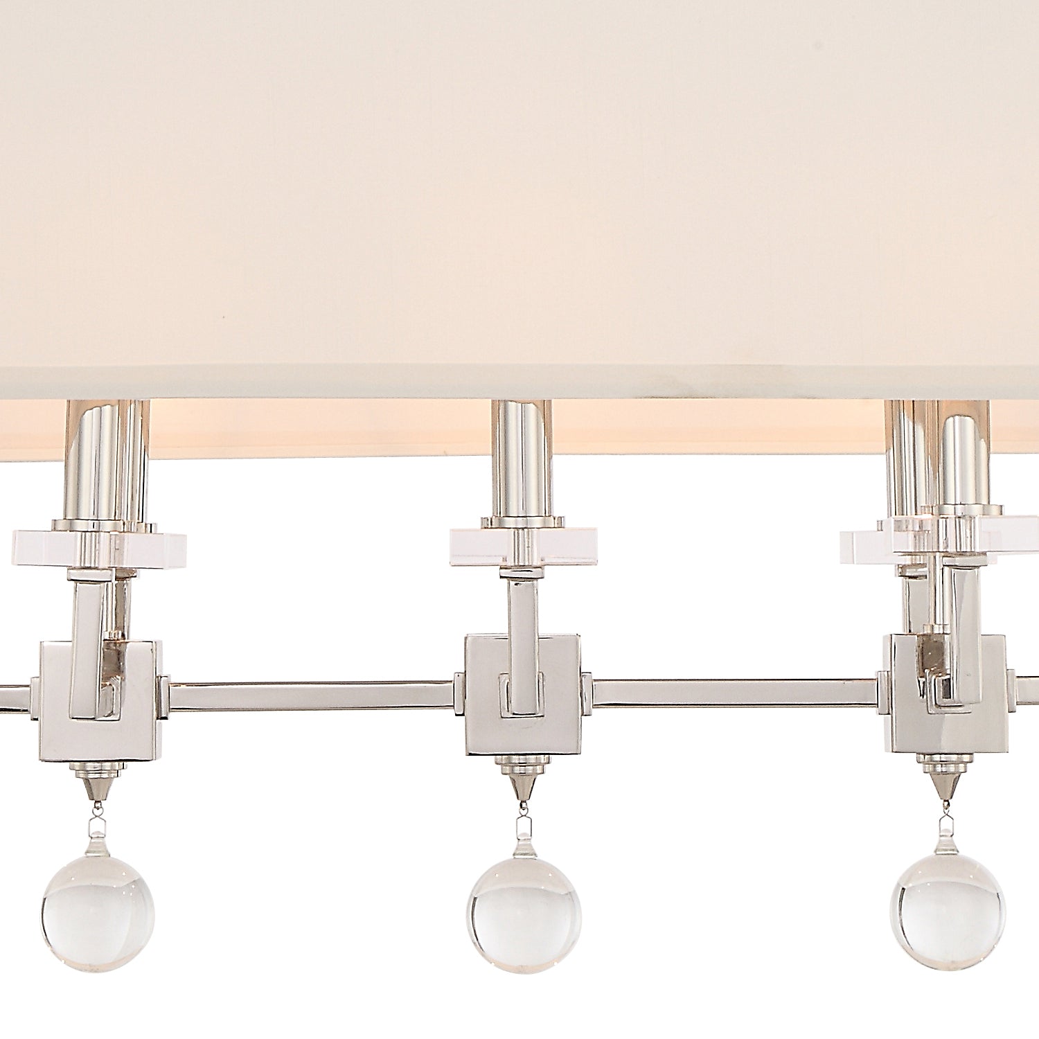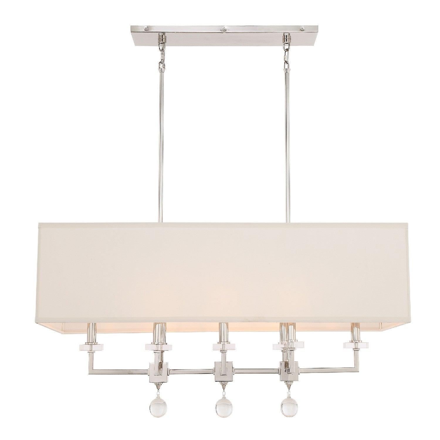 The Paxton collection combines geometrically arranged chunky glass bobeches with a frame of super-sleek, tapered crystal column ending with a single hanging glass ball. The delicate lines of the shapely frame, combined with the precisely balanced arms and simple, tailored shade, create a clean, transitional feeling with a distinct, mid-century modern flair. Stylish, modern and minimal, Paxton brings luxurious appeal to a variety of interior spaces.