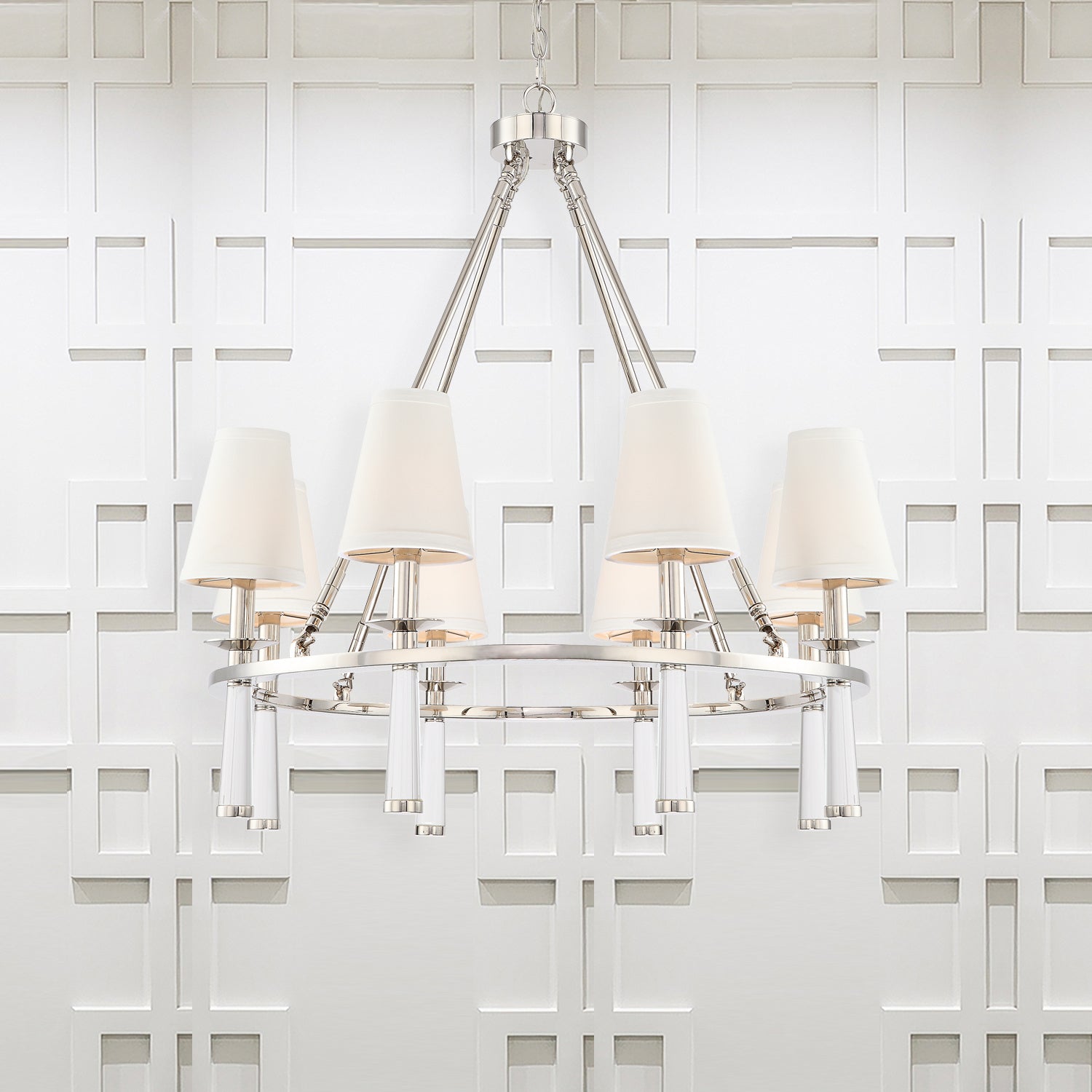 Baxter Eight Light Chandelier in Polished Nickel - available from The Lighting Shoppe, trusted by Canadian homeowners