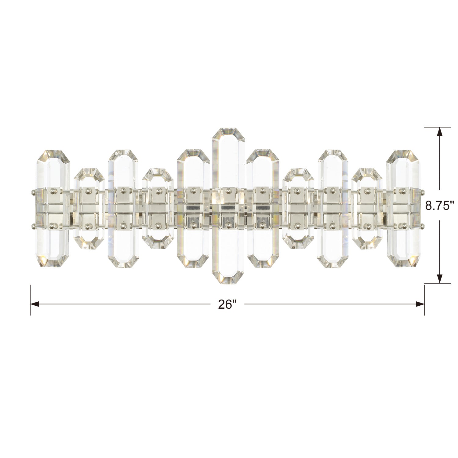 The Bolton Collection exudes glamour and luxury when placed as a focal point in the room. The varying sized hand cut crystal panels are secured to a floating steel frame. The unique crystal prisms reflect beautiful light that creates an endless sparkle that elegantly blend with many home décor styles.