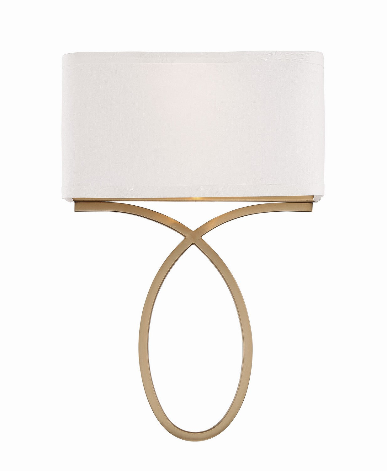 The minimalist two-light wall sconce features an oval metal accent below the white fabric rectangular shade. Its simple form can be used for a contemporary or transitional home while versatile enough to be incorporated into any design.