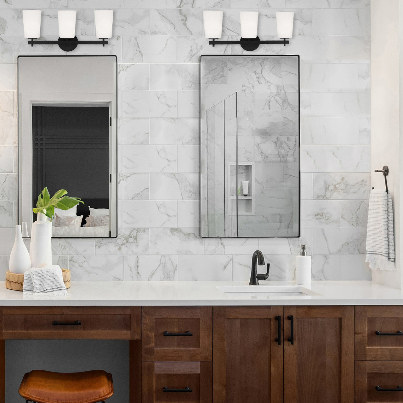 Both timeless and transitional, the minimalist design makes the Colton ideal for any home decor. With a distinctive tapered opal white glass shade, this fixture is a smart choice for a bathroom, bedroom, or powder room. Designed with thoughtful simplicity, the Colton strikes the perfect balance of function and form.