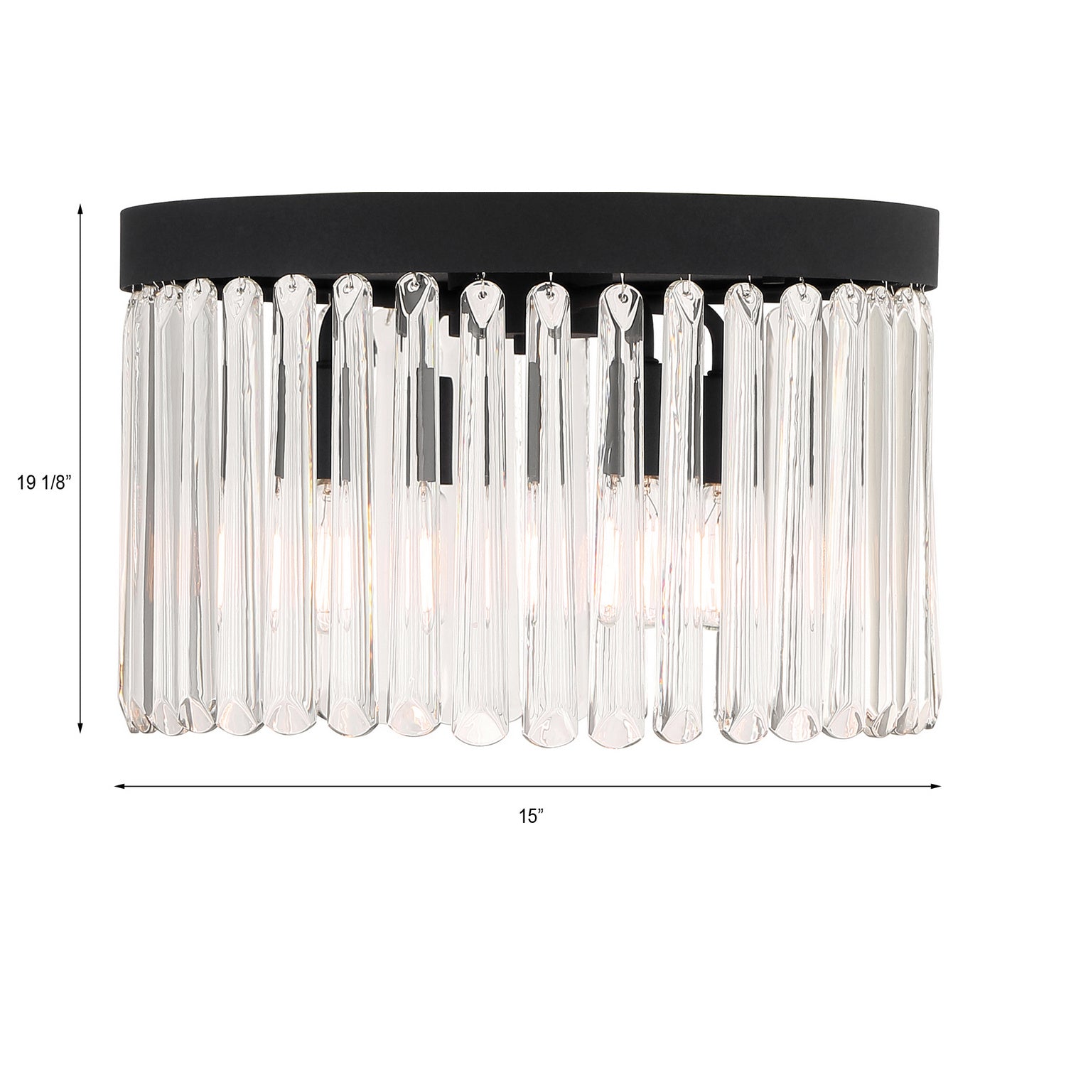 Art deco design is exemplified in the Emory collection. The collection features a row of smooth glass prisms hanging from a steel frame. Both the Black Forged and Modern Gold finishes, add all the sparkle and glamour you need in a fixture.