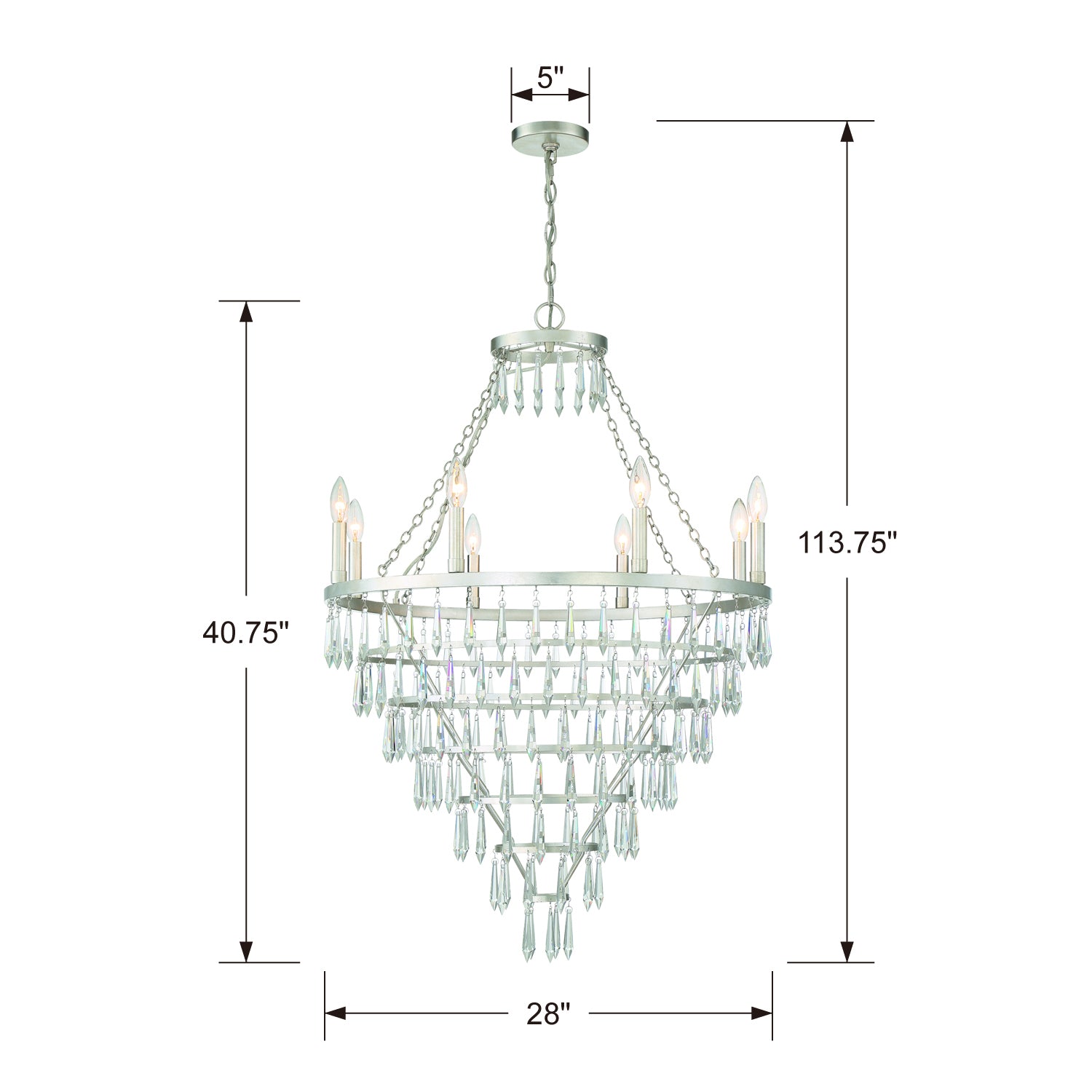 Adorn your home with the Lucille waterfall crystal chandelier. A modern rendition of traditional elegance, eye-catching hand cut crystal drops hang from multiple tiered round frames to demand attention in the room. This chandelier makes a great first impression in a front stairwell, entry, or formal dining room.