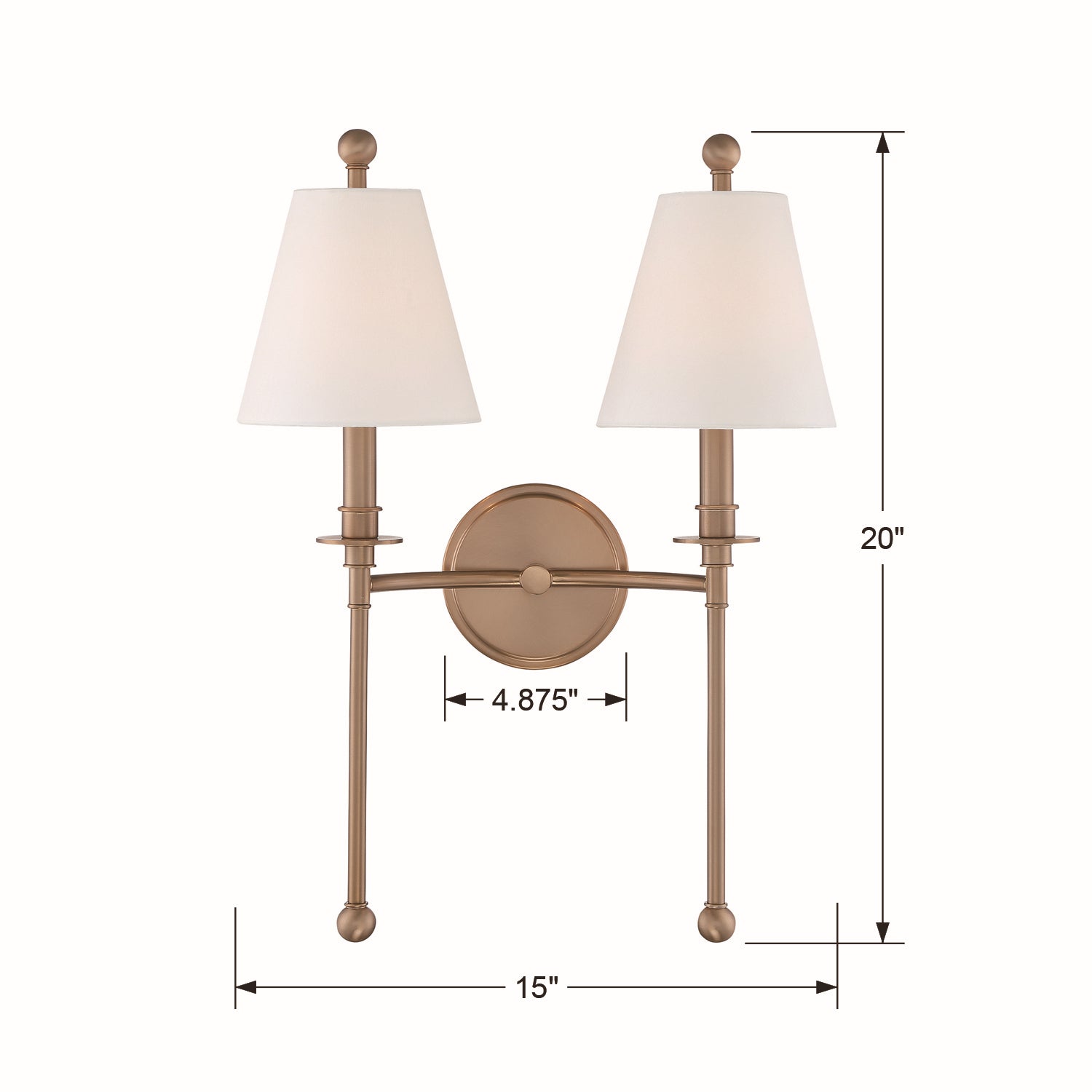 Riverdale Two Light Wall Sconce in Aged Brass - available from The Lighting Shoppe, trusted by Canadian homeowners