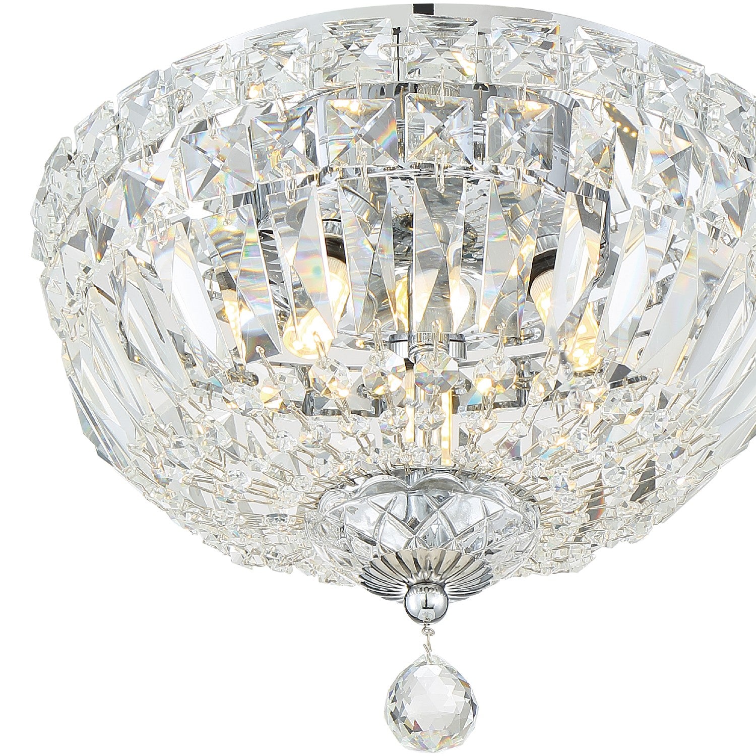 It doesn't get more glamorous than a crystal ceiling mount. It will be hard to ignore the Roslyn fixture when you walk into a room. Draped in an abundance of hand cut crystal jewels, this contemporary collection is a perfect statement to a living room, hallway, bathroom, or entry.