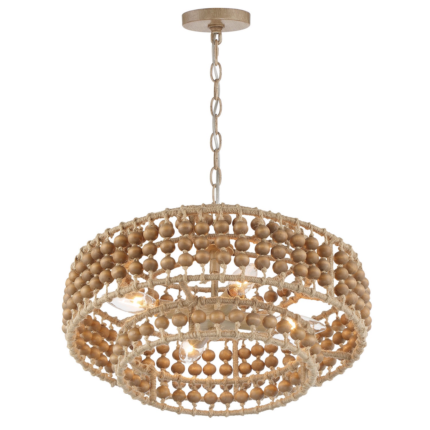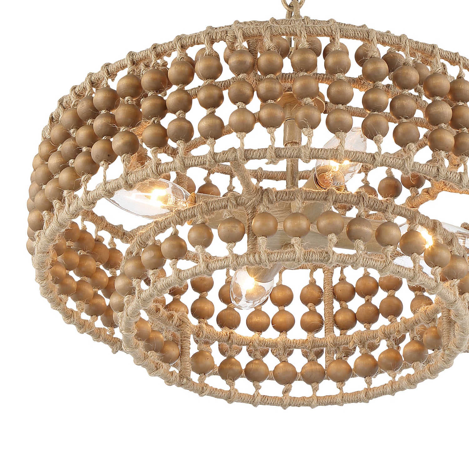 The Silas interlaces natural wood beads with jute rows, bringing an organic element to its environment. A series of wood beads are strung together, taking on a handmade aesthetic that creates an inviting and casual style to a room.