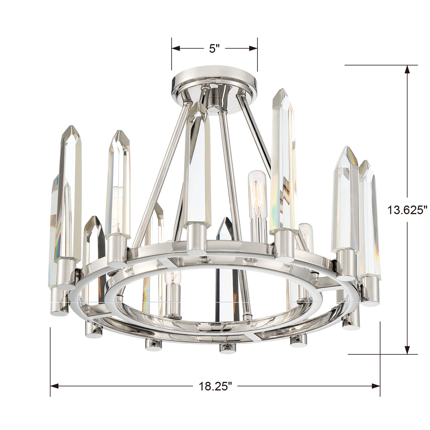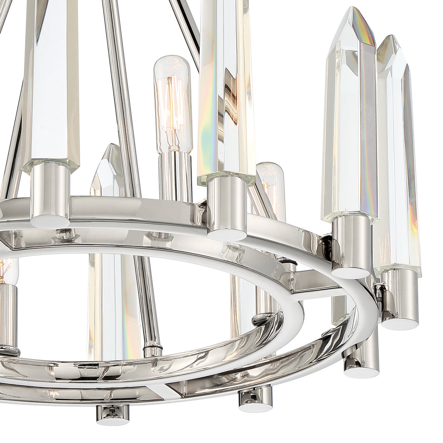 Dazzling solid hand cut crystal-shaped icicles create a standout character for a look that is ultra-modern. The crystal's sharp distinct angles create a tailored look that becomes more accentuated by its polish nickel finish. The Watson collection is a perfect centerpiece to bring the wow factor to a home's decor.