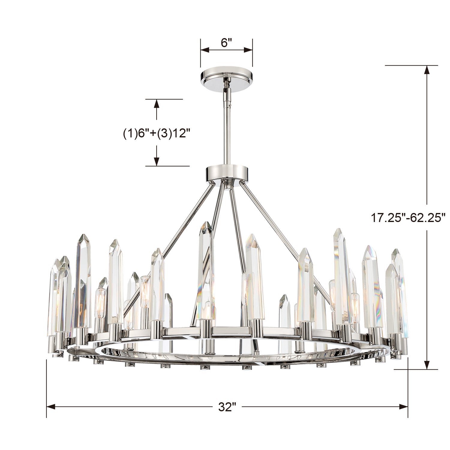 Dazzling solid hand cut crystal-shaped icicles create a standout character for a look that is ultra-modern. The crystal's sharp distinct angles create a tailored look that becomes more accentuated by its polish nickel finish. The Watson collection is a perfect centerpiece to bring the wow factor to a home's decor.