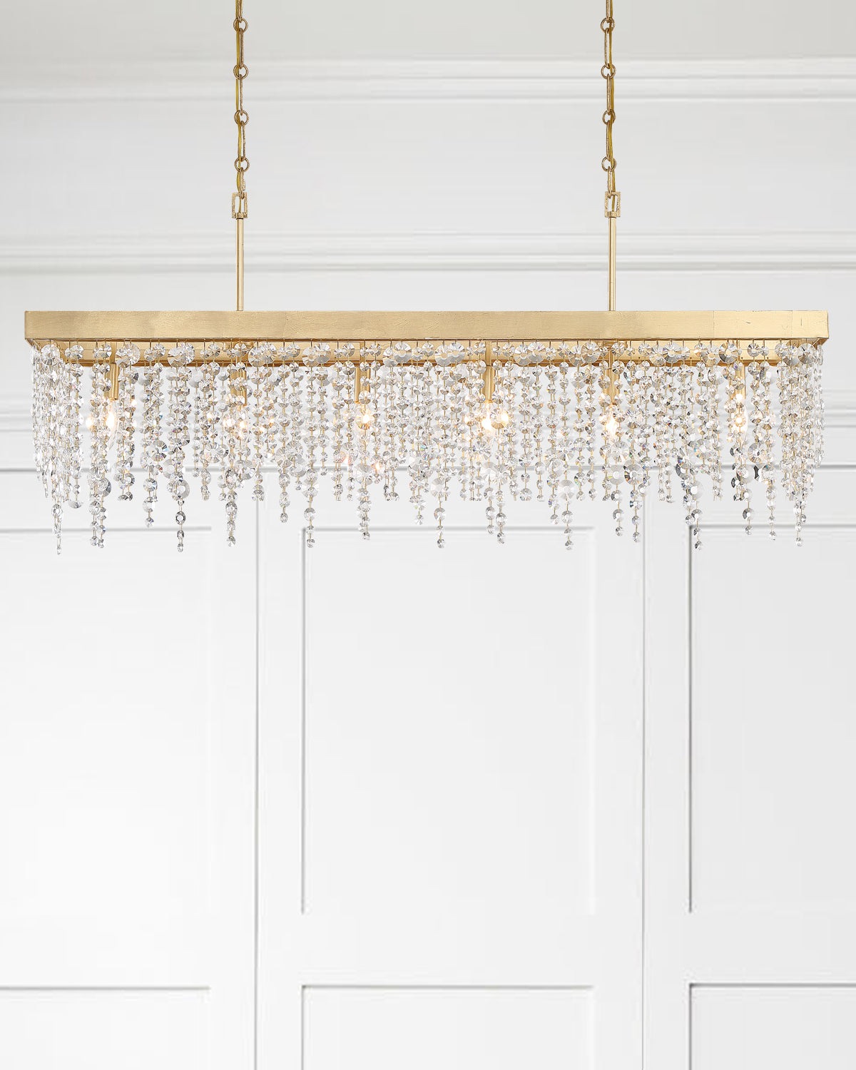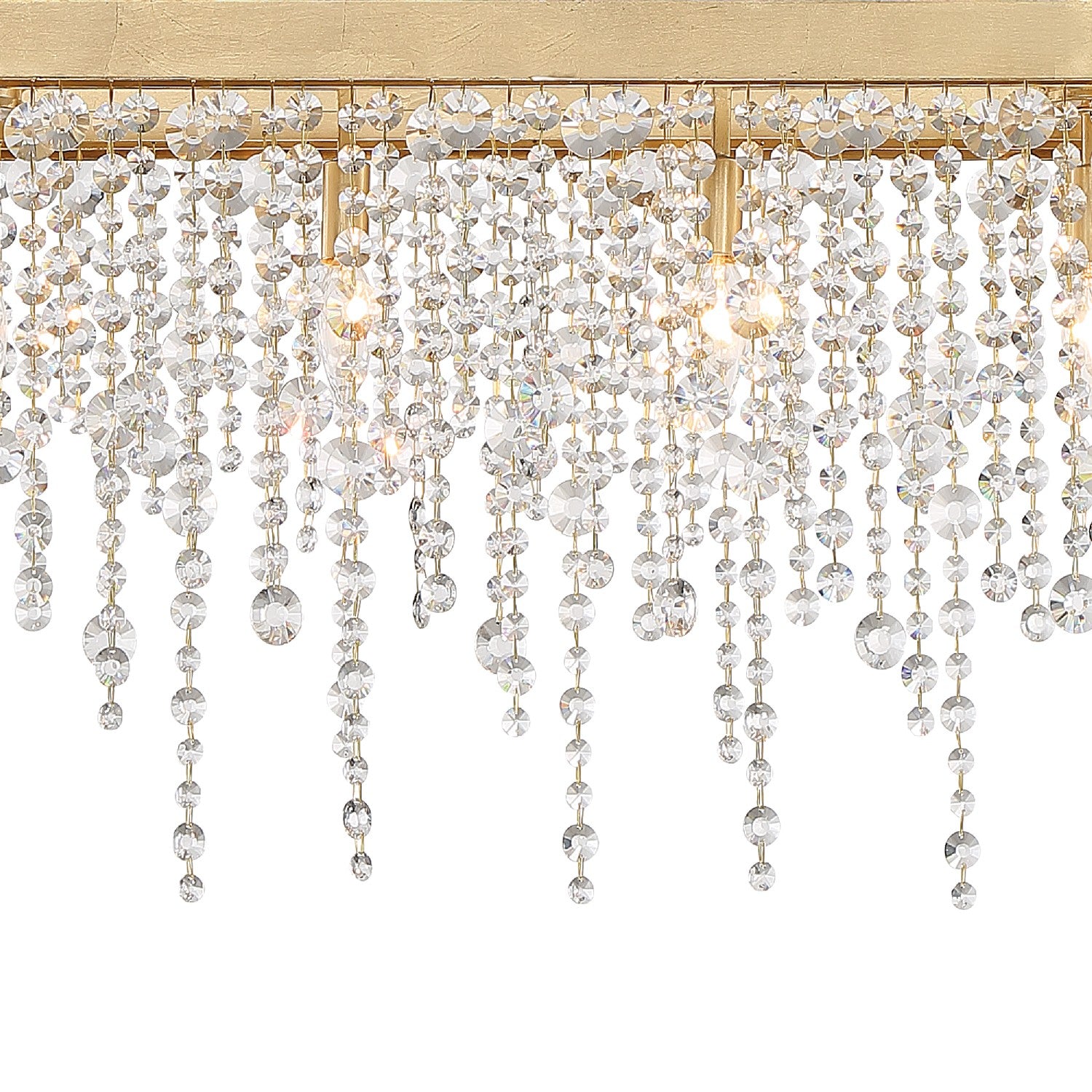 Layers of multi-sized hand cut crystal strands are arranged on a simple, Black Forged or Antique Gold frame creates optimal sparkle. A perfect complement to any space. The Winham fixture is a sparkling masterpiece when placed as a focal point in a bedroom, dining room or living room.