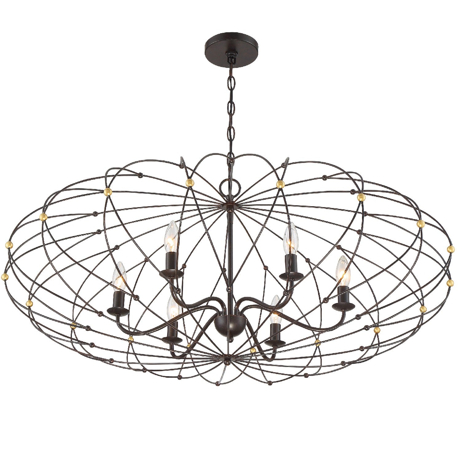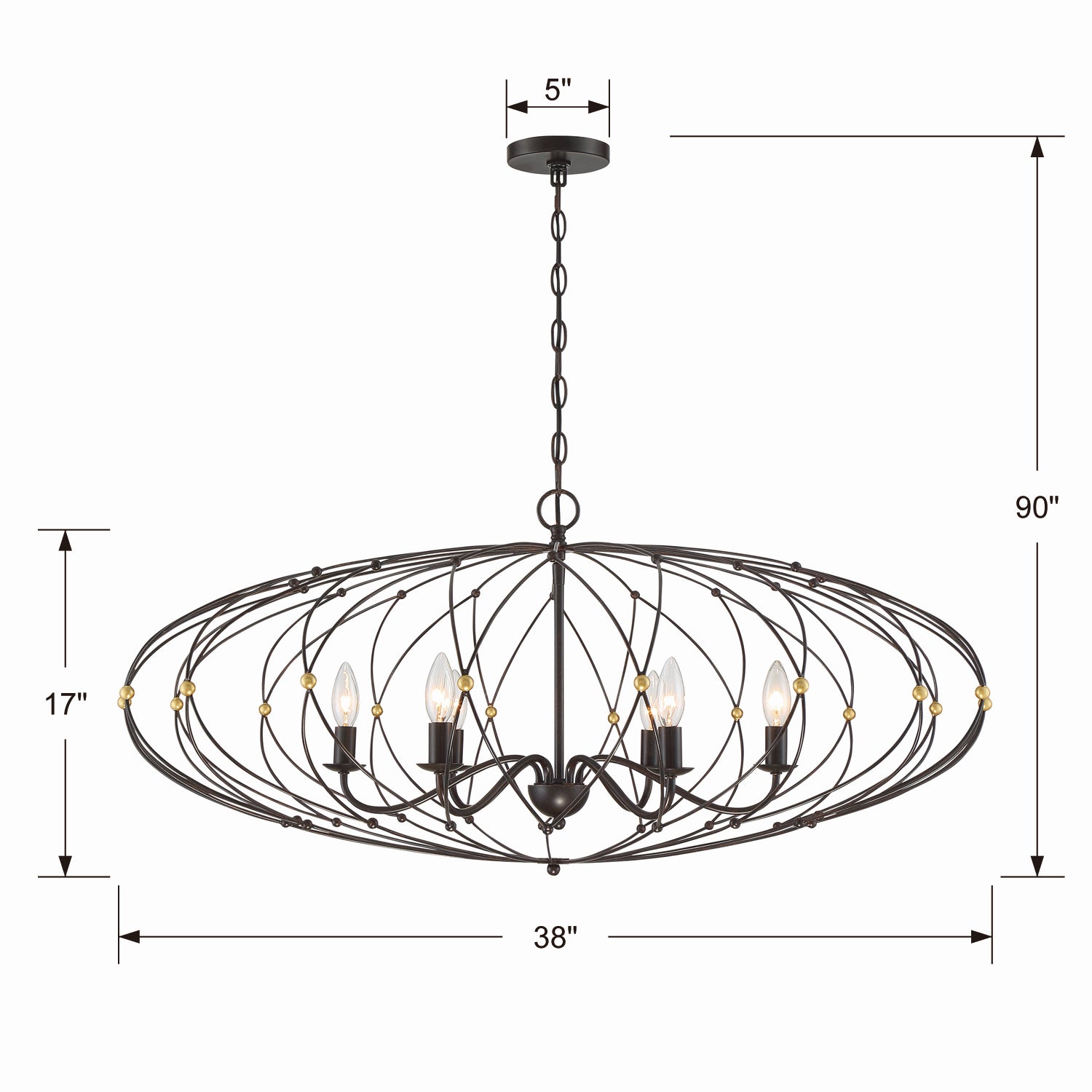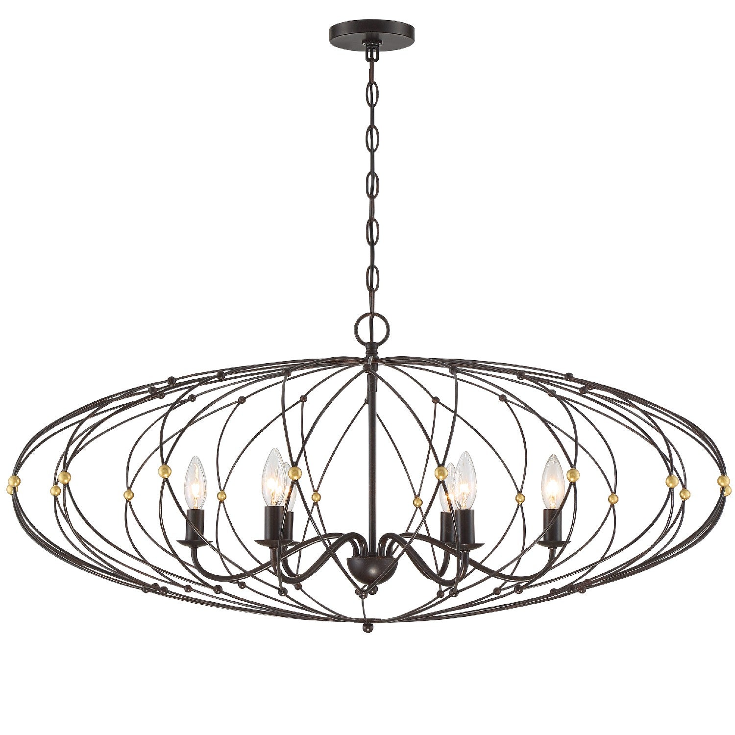 Zucca Six Light Chandelier in English Bronze + Antique Gold