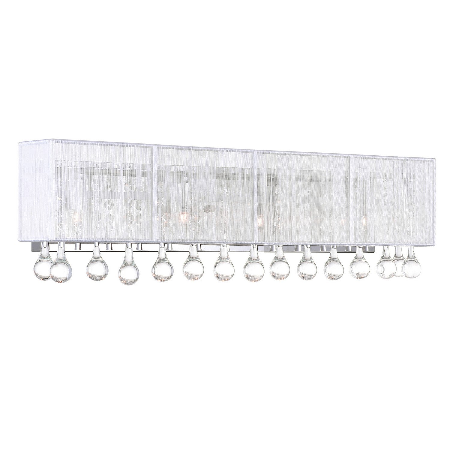The understated sparkle of Water Drop 4-Light Wall Sconce will easily make a boring bathroom stand out. This glistening vanity light available in white or silver shade has dangling crystal balls ready to add style to a dull and compact space. Add this to the powder room or the master bath and watch it give your bathroom a spa-like ambiance.