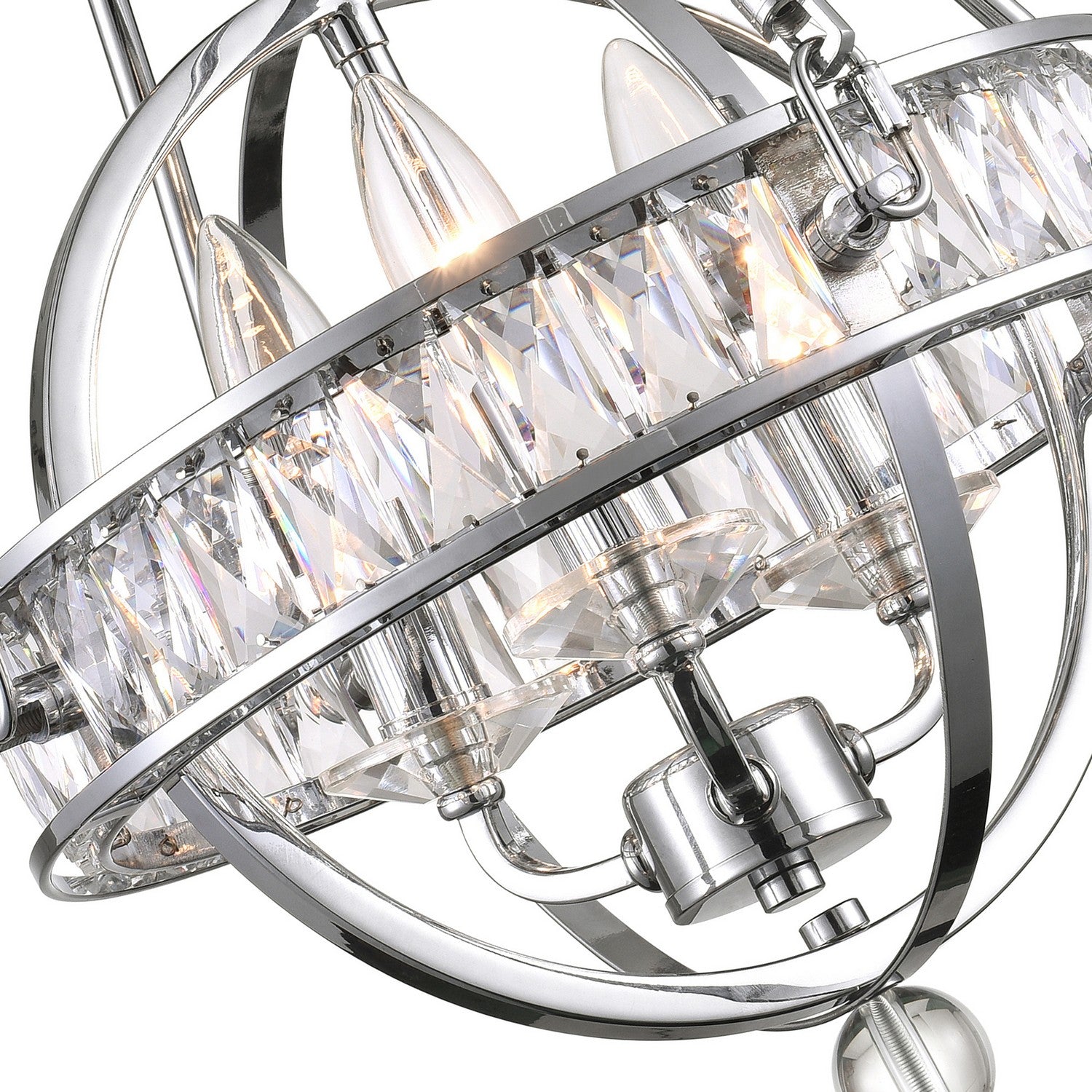 Make a bold style statement with the Arkansas 12" Chrome Mini Chandelier. This orbital-shaped light fixture features an open metal frame adorned with a band of faceted crystals for a touch of sparkle. Perfect for bedrooms, bathrooms, or entryways, this 3-light chandelier casts a warm glow through candle-style bulbs. Its chrome finish and compact silhouette bring modern charm and cozy elegance to any smaller space in need of a refined lighting upgrade. Finish: Chrome Fixture Width: 12" Light Count: 3 Bulb Base: E12 LED Compatible Style: Modern / Glam / Transitional Mount Type: Mini Chandelier