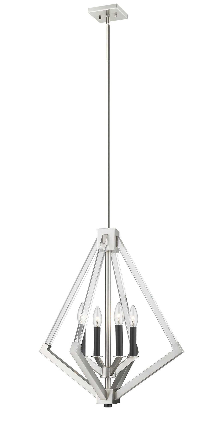 Finished in Brushed Nickel, this chandelier includes both nickel and black candle covers and a matching bottom finial, giving you the flexibility to customize the look—either sleek and monochromatic or accented with bold black contrast. With multiple rod lengths included, the Diamond chandelier is easily adjustable for dining rooms, foyers, bedrooms, and statement spaces where refined elegance is desired.