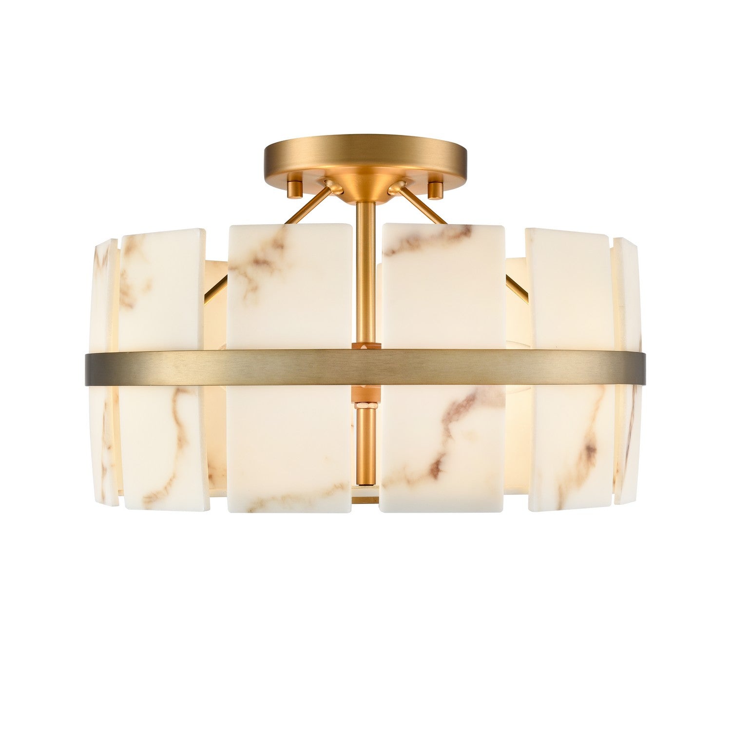 Luna Alabaster Three Light Semi Flush Mount in Brass - available from The Lighting Shoppe, trusted by Canadian homeowners