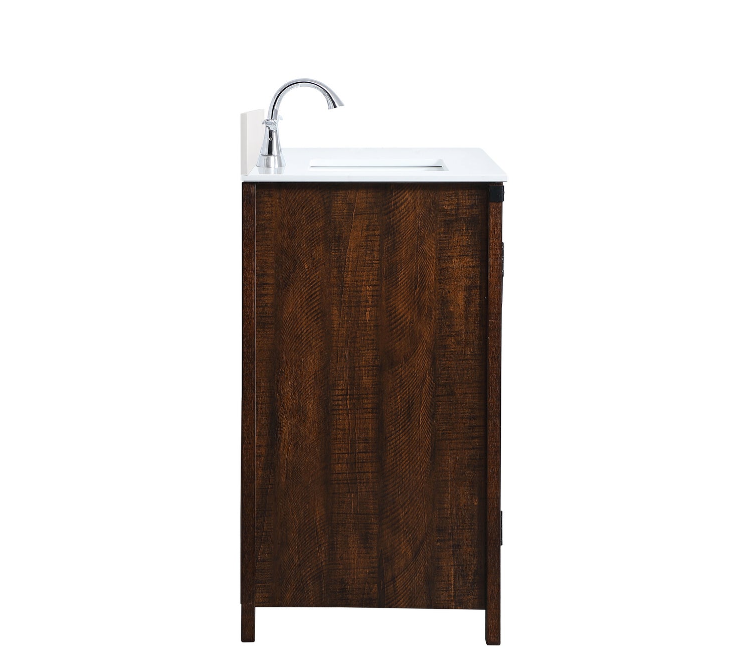 The 36" espresso finish vanity recalls a time of rustic nature. Reminiscent of barn doors, the 2 door cabinet and 4 drawers add both stylistic charm and function with its plethora of storage options for all your bathroom miscellany. Whether for your bathroom or the guests', everyone will marvel at its lively personality. Comes with a matching backsplash to complete the look and protects your wall.