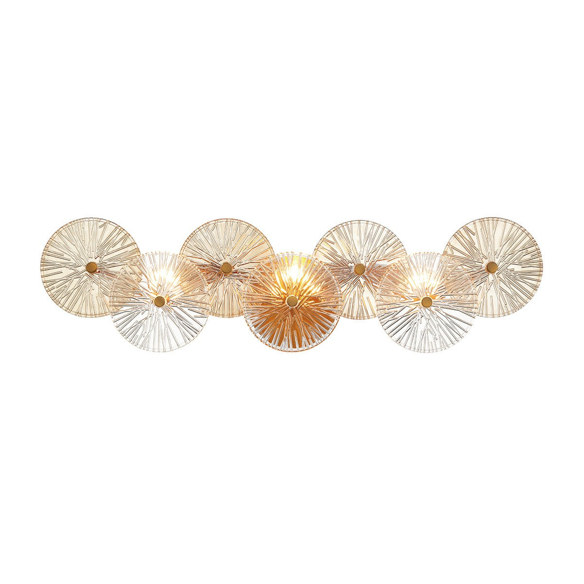 Grand, robust detailing showcase exemplary glasswork. The pressed ribbed glass are each handmade creating unique pieces. Intricate detailing and naturally tinted glass further add to its unique characteristics.