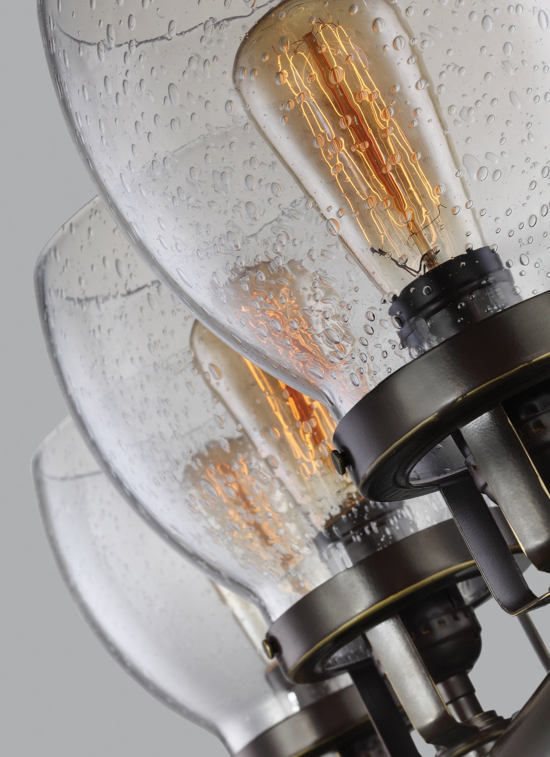 The Belton three light vanity fixture in bronze provides abundant light for your bath vanity, while adding a layer of today's style to your interior design. Influenced by the vintage industrial designs of early 20th Century America, the transitional Belton lighting collection has seeded glass shades and Midnight Black finish, adding a layer of retro design to the warm look.