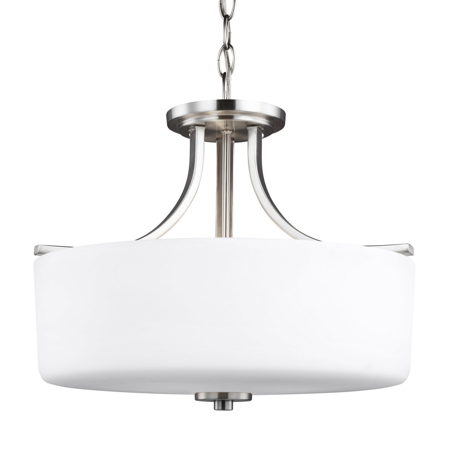 The Canfield three light semi flush fixture in brushed nickel supplies ample lighting for your daily needs, while adding a layer of today's style to your home's décor. Behind every seemingly simple design lies unerring attention to restraint and obsessive attention to the tiniest details. The Canfield collection by draws on the modernist traditions of "less is more". Essential functional elements dictate the aesthetics, and clean lines prevail. Layers of intricately finished hand-brushed steel progress vertically to the soft glow of light diffused through finely etched glass diffusors. Canfield offers a "whole home" lighting solution, offering lighting in every imaginable category from the auspicious 15 light 3-tier chandelier, to the concise mini-pendant and one-light sconces. The collection is available in hand brushed Burnt Sienna for a warm, tactile, almost Craftsman design style, or a brushed nickel to emphasize the more architectural elements of your interior.