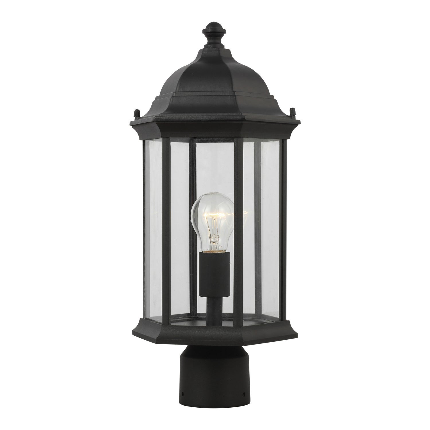 The Sevier one light outdoor post top in black creates a warm and inviting welcome presentation for your home's exterior. The Sevier outdoor collection by brings timeless design to new heights with its traditional design details found in classic outdoor fixtures as well as an open bottom for easy maintenance. Made of durable cast aluminum, a multi-level crown, top finial and stepped-edge back plate complete the traditional look. Offered in Antique Bronze or Black finish, both with Clear glass, the collection includes a one-light outdoor pendant, one-light post lantern, a large one-light up light outdoor wall lantern, a small one-light up light outdoor wall lantern, a small one-light downlight outdoor wall lantern, and a large one-light downlight outdoor wall lantern.