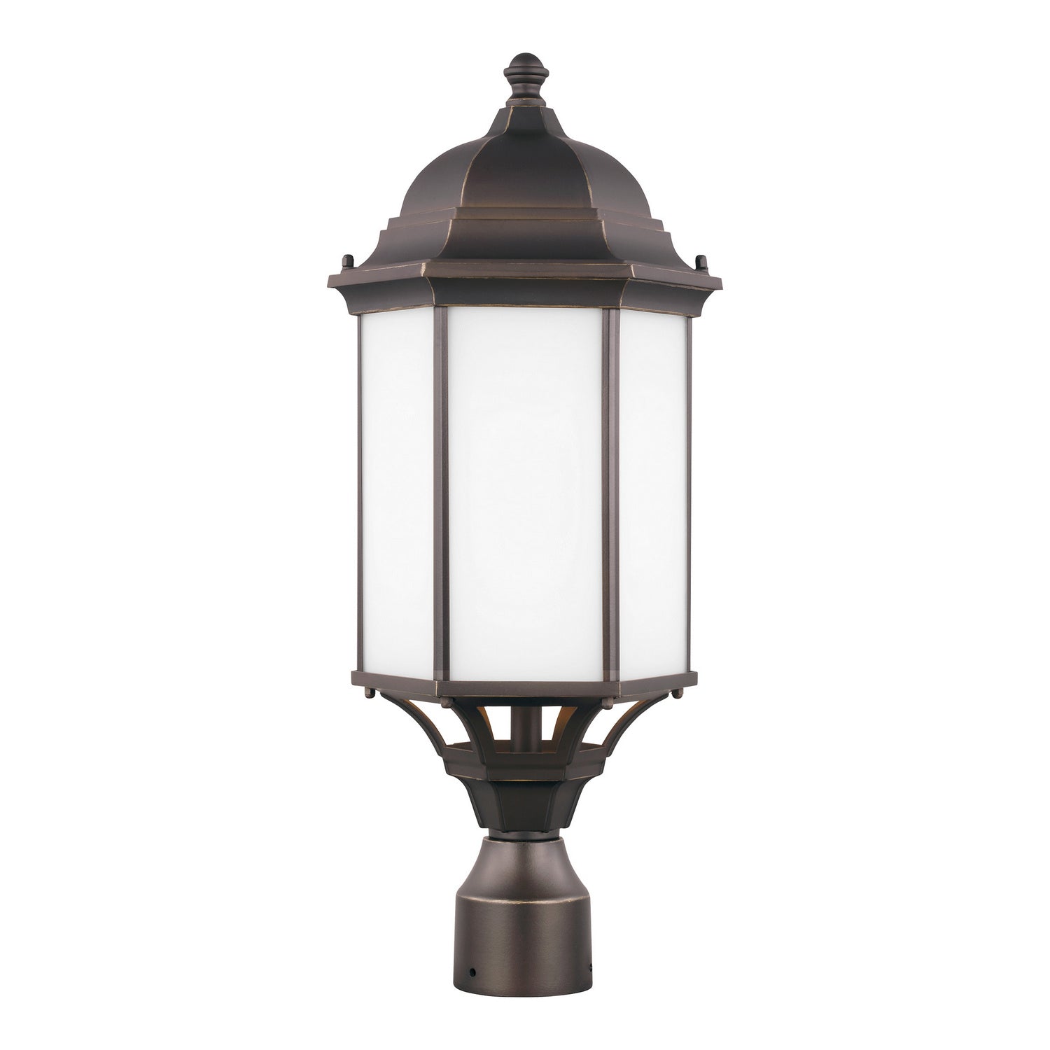 The Sevier one light outdoor post top in antique bronze creates a warm and inviting welcome presentation for your home's exterior. The Sevier outdoor collection by brings timeless design to new heights with its traditional design details found in classic outdoor fixtures as well as an open bottom for easy maintenance. Made of durable cast aluminum, a multi-level crown, top finial and stepped-edge back plate complete the traditional look. Offered in Antique Bronze or Black finish, both with Clear glass, the collection includes a one-light outdoor pendant, one-light post lantern, a large one-light up light outdoor wall lantern, a small one-light up light outdoor wall lantern, a small one-light downlight outdoor wall lantern, and a large one-light downlight outdoor wall lantern.