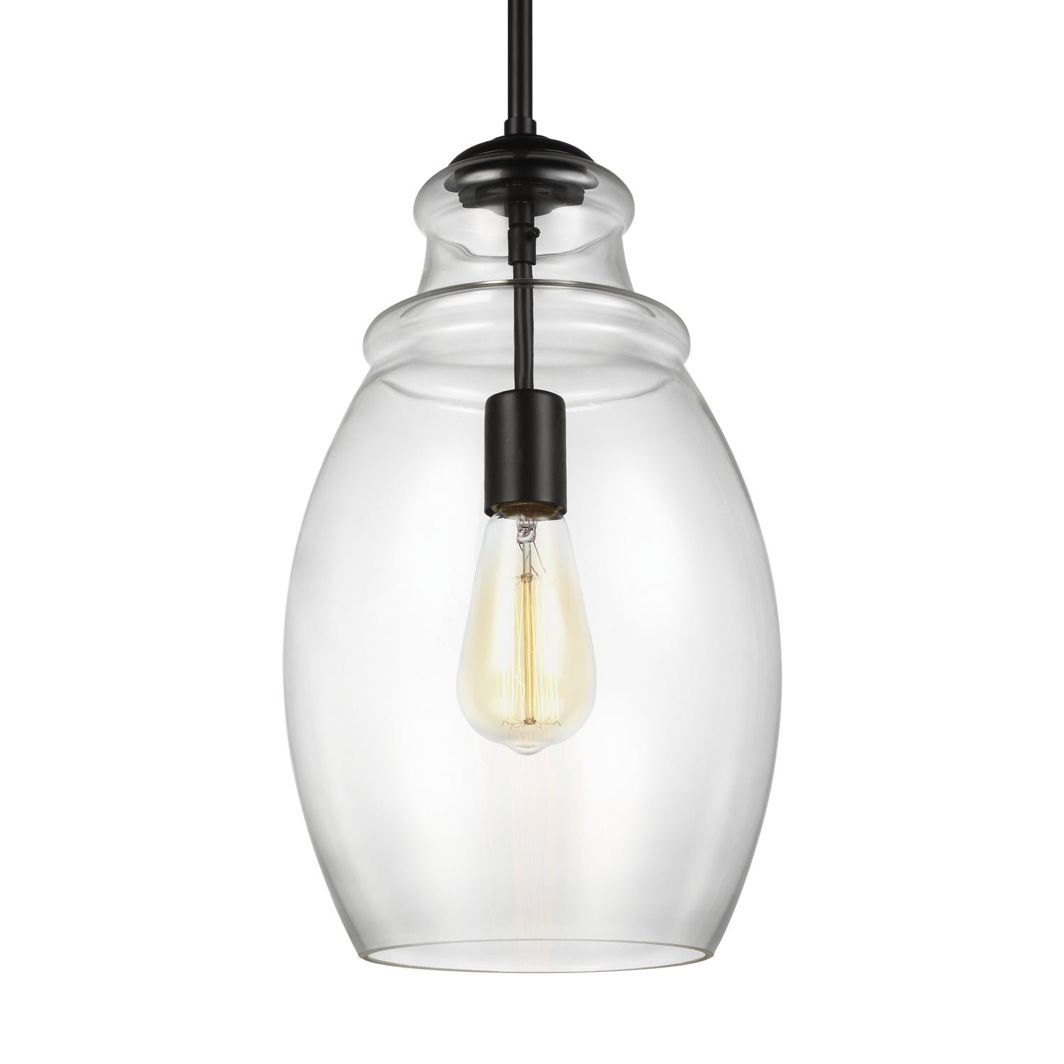 The Marino one light indoor pendant in oil rubbed bronze enhances the beauty of your home with ample light and style to match today's trends. Marino features a thick Clear Glass shade with a single lamp suspending downward from the center. The elegant turning detail at the top of the body compliments spaces ranging from traditional to modern. Marino is offered in three distinct finish options: Satin Nickel, Chrome and Oil Rubbed Bronze.
