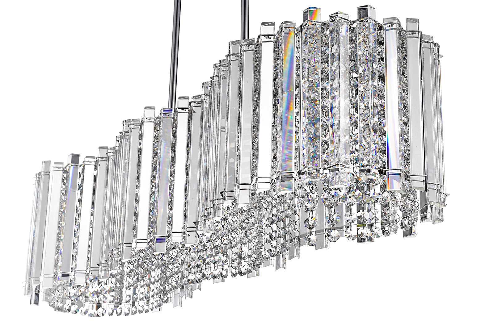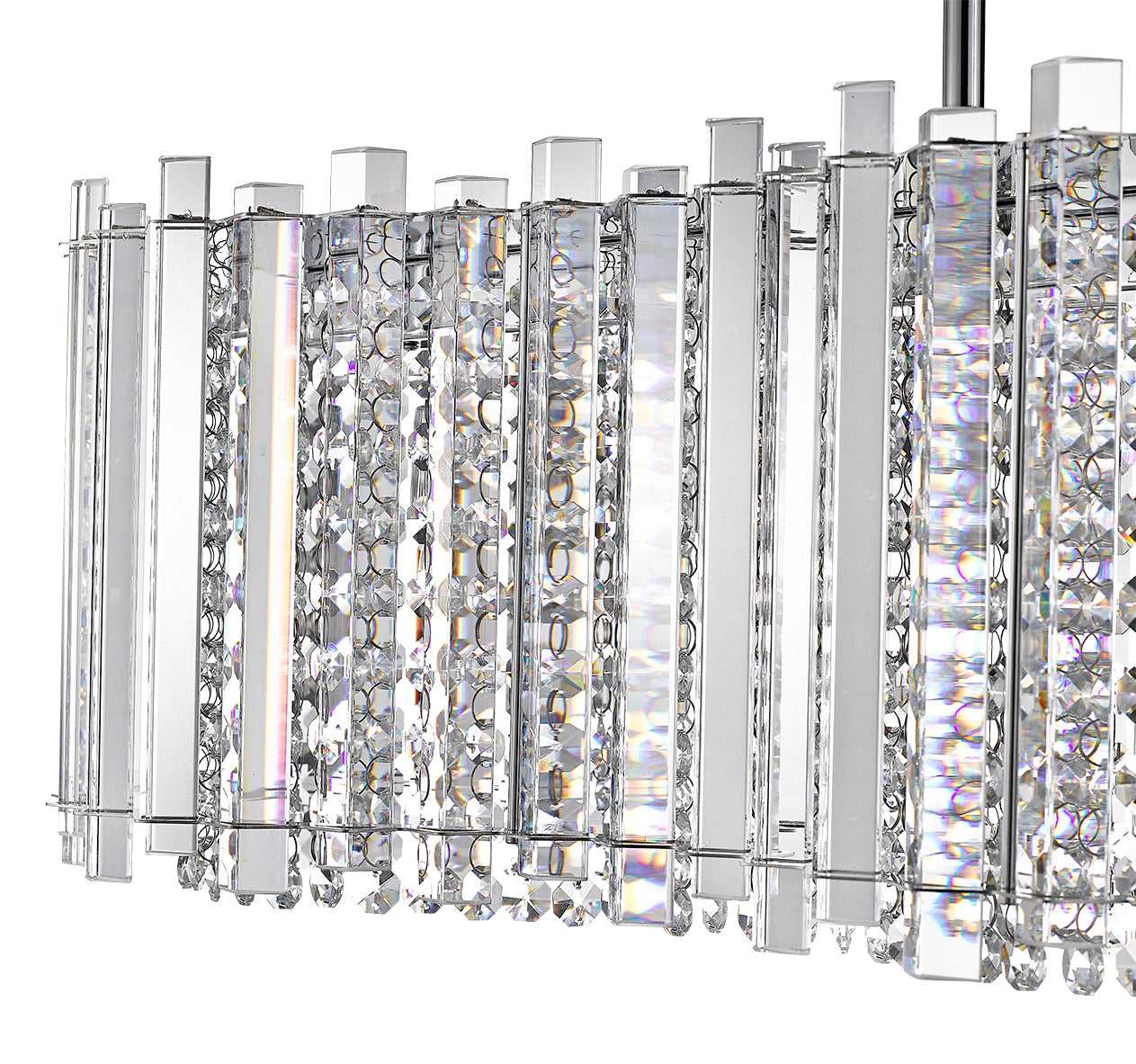 Supported by a sleek chrome metal frame, the Hurley exudes refined elegance while maintaining a streamlined silhouette. Measuring 31.89 inches in length and 9.45 inches in width, this pendant delivers brilliant illumination and balanced proportion—perfect for dining rooms, kitchen islands, or open living spaces.