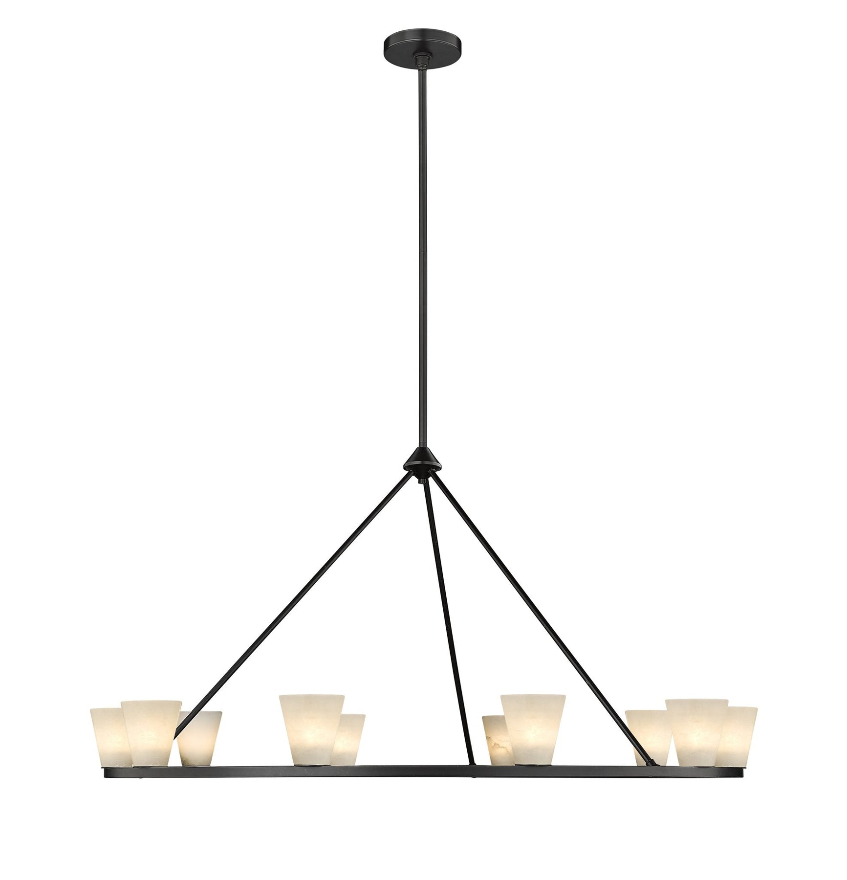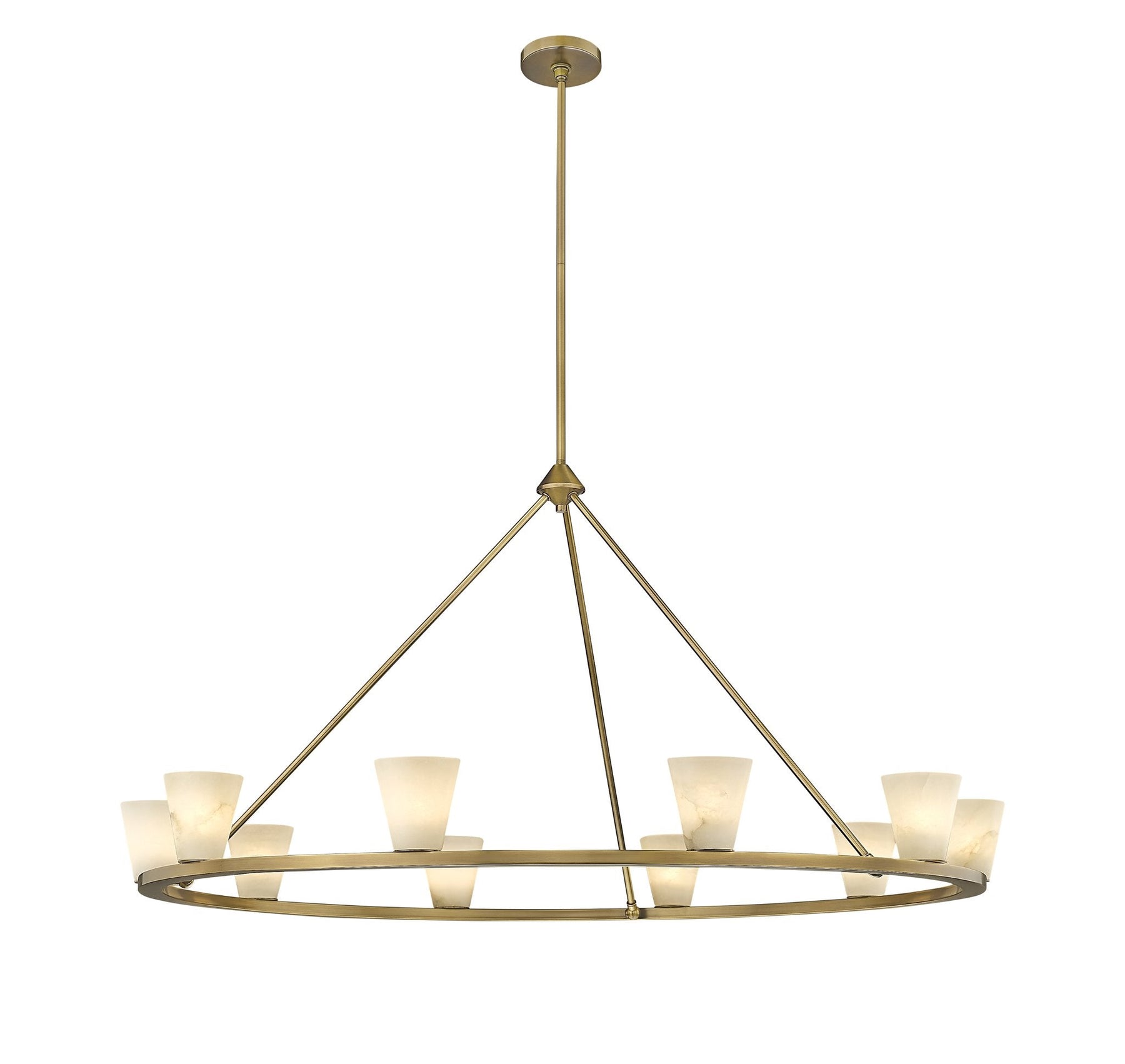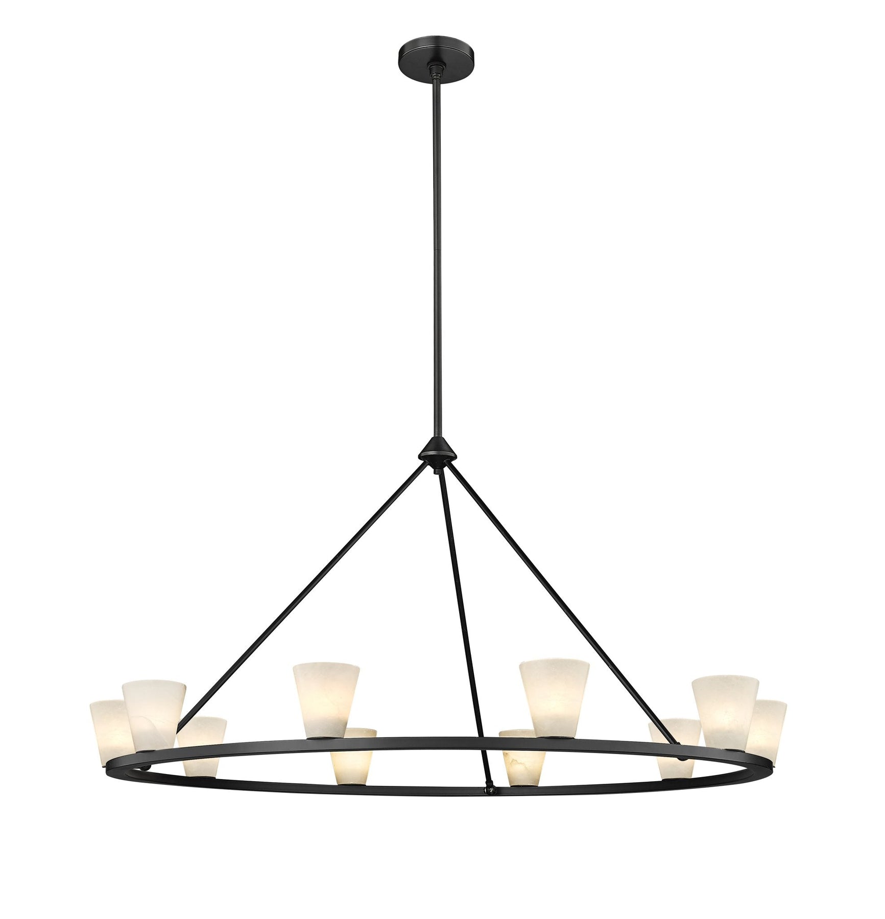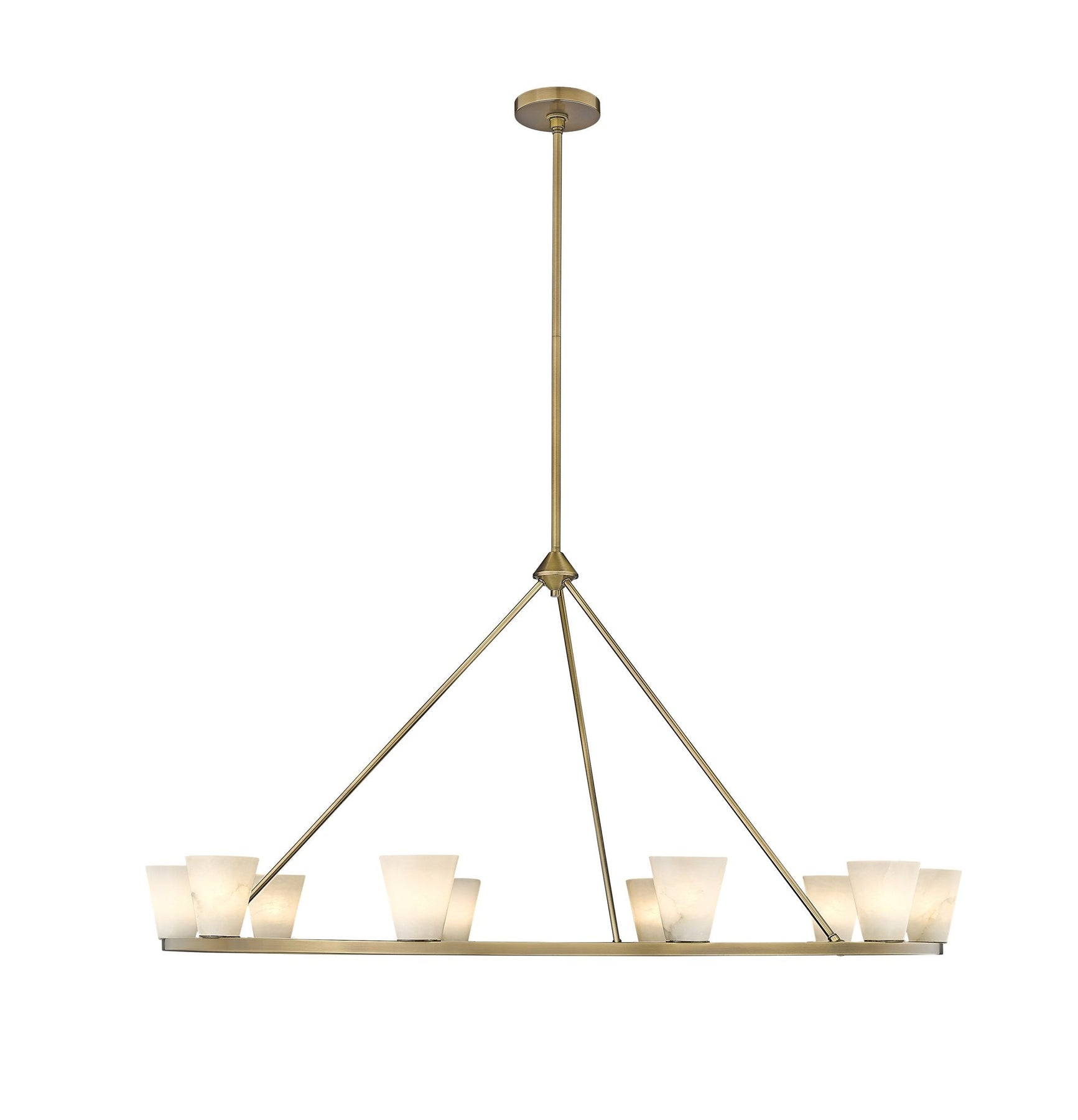 A true statement piece with solid, carved alabaster shades with the unique design which allows shades to be hung up or down.