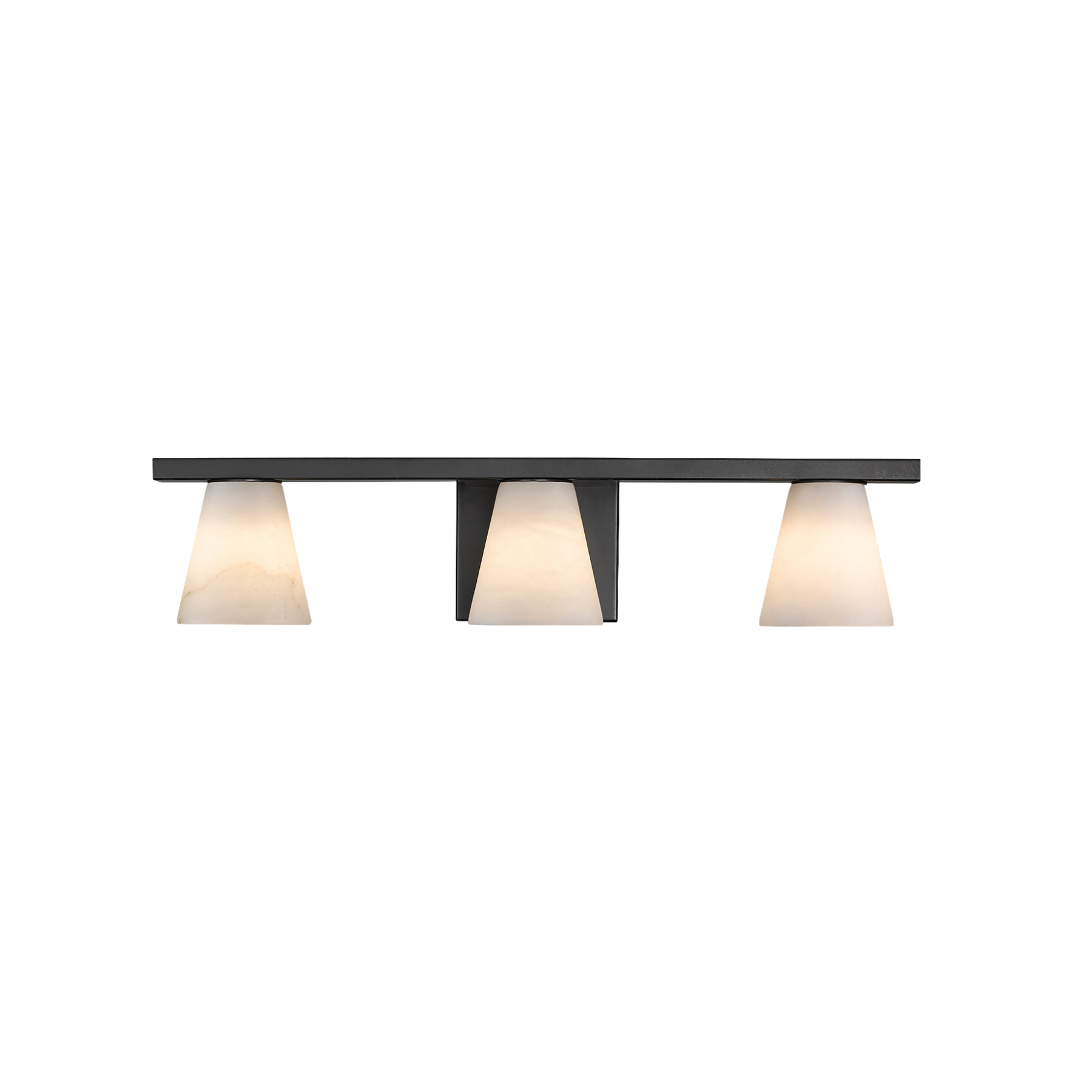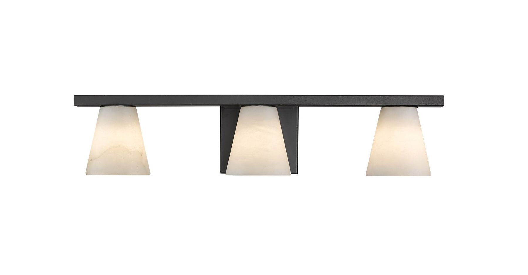The Ironstone family combines the old world charm and warmth of carved alabaster stone with modern styling and beautiful finishes in flat black, oxidized gold and polished nickel to create a refined look. Contemporary styling is softened by the organic beauty of each piece of alabaster stone's natural veining, making each piece unique.