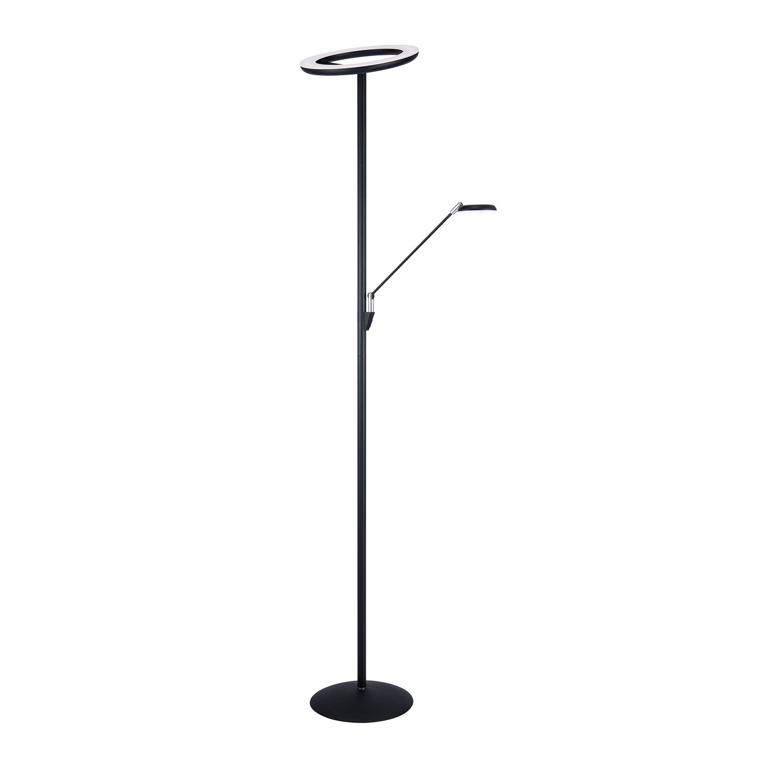 NOLA LED Reading Light Torchiere in a Black finish with Satin Nickel accents