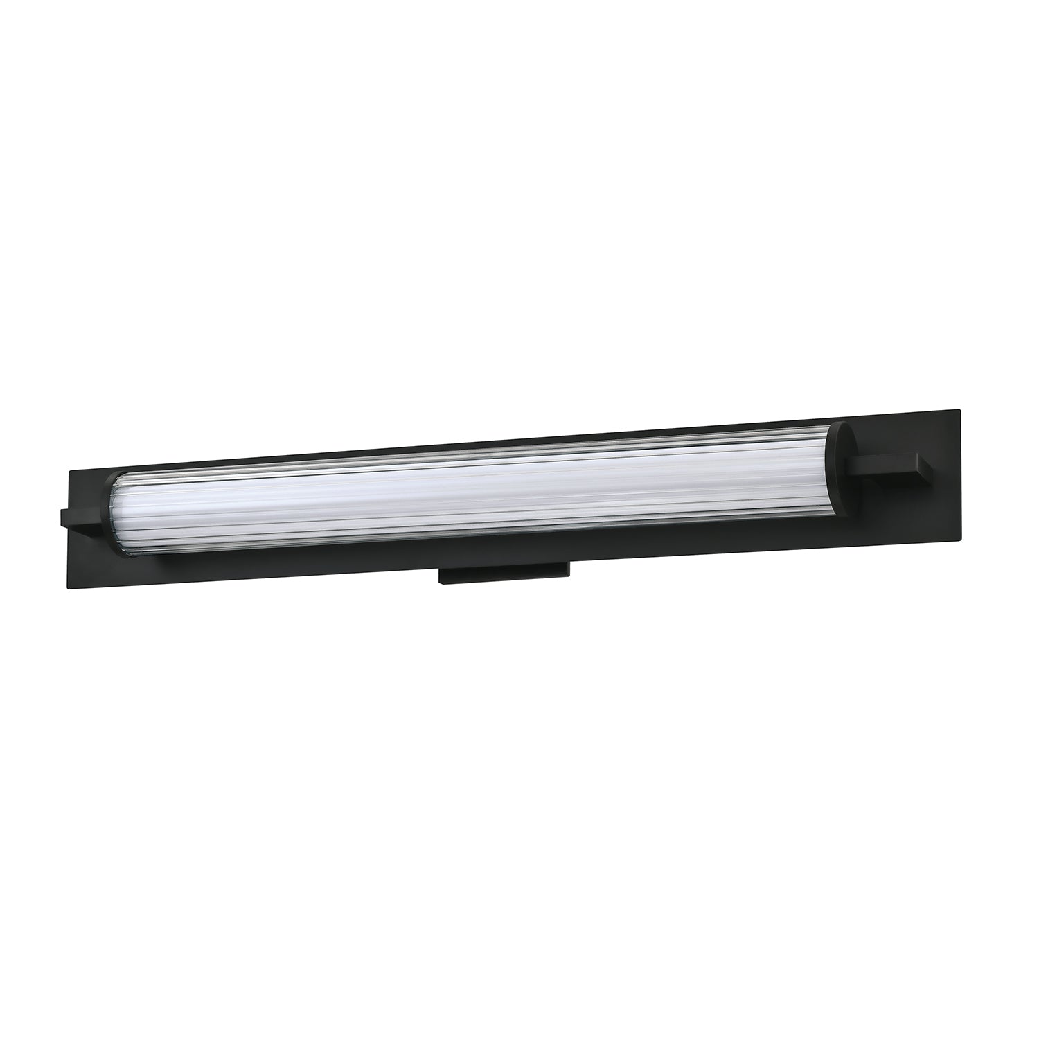 SABRA 31 in. LED Vanity Light in a Black finish with Clear Ribbed Glass over Acrylic