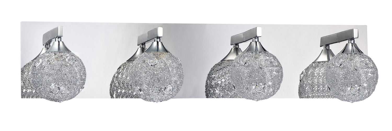 SOLARO 4-light Bath & Vanity Light in a Chrome finish with Decorative Mesh shades featuring Optic Crystal Jewel insets